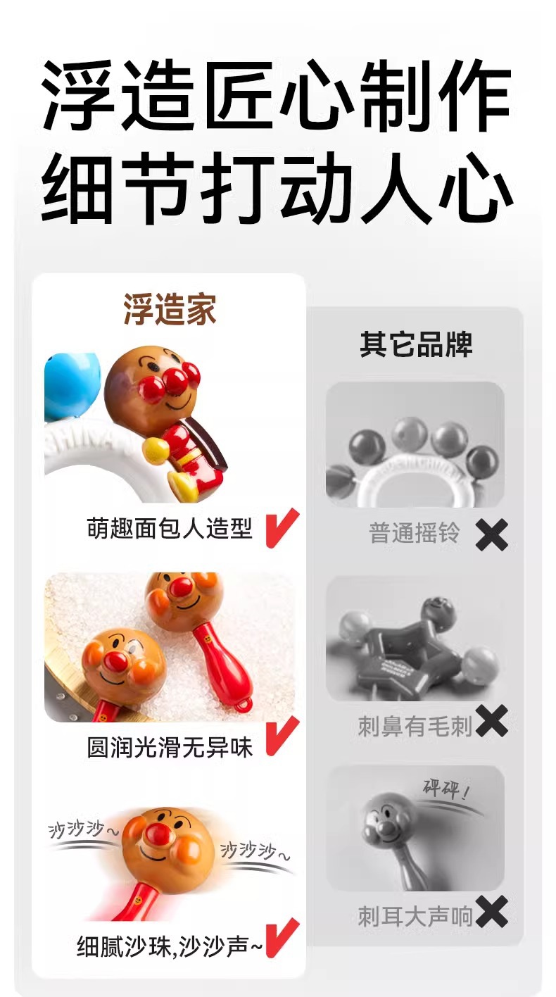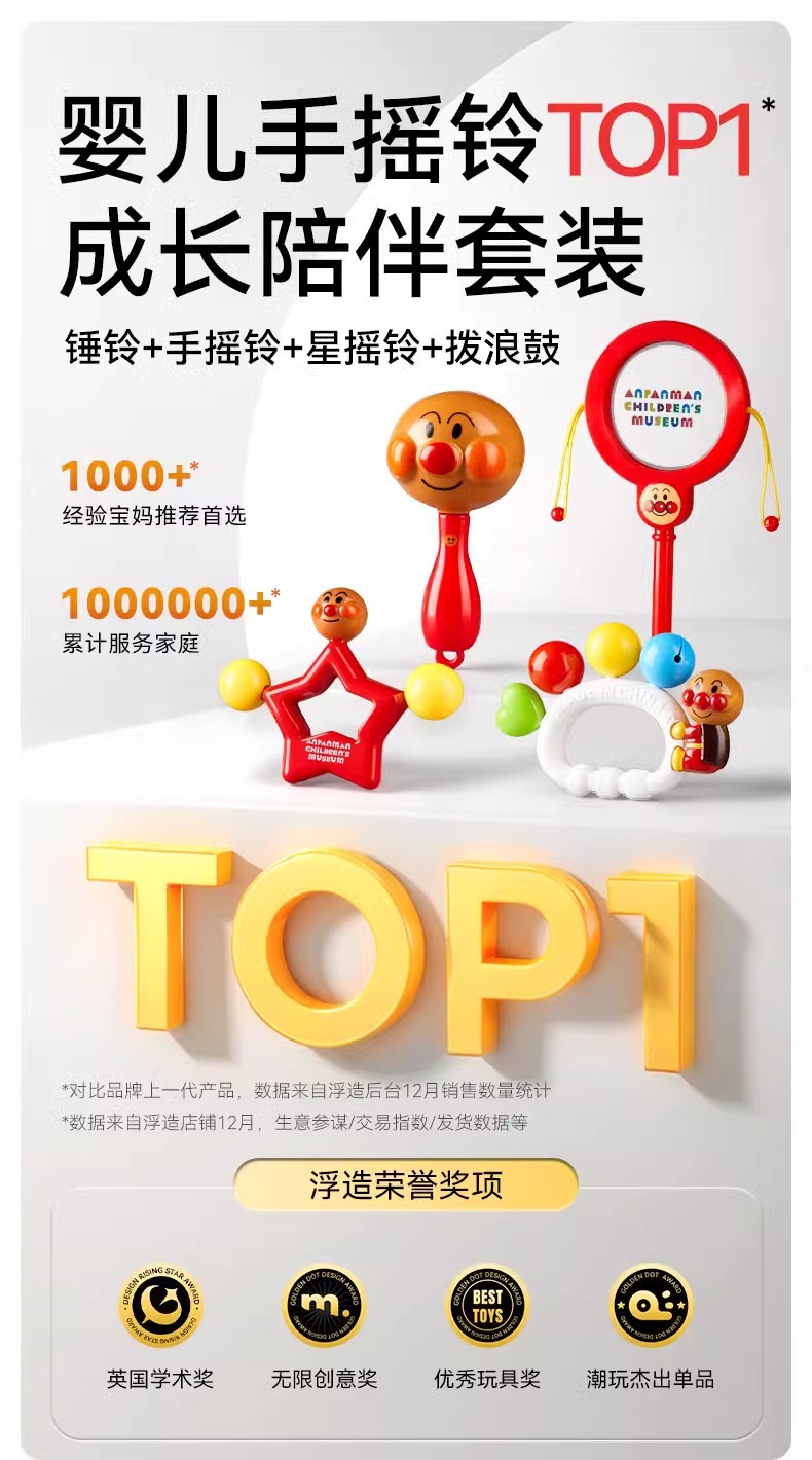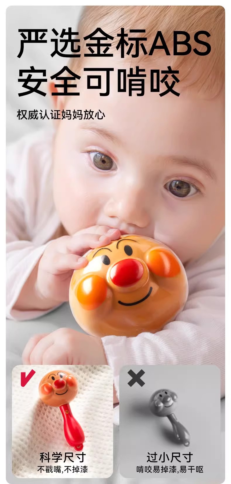 【婴儿手摇铃TOP,成长陪伴套装!】面包超人手摇铃沙锤 婴儿安抚新生礼物 宝宝0-1岁消耗体力 婴幼非玩具-QQ