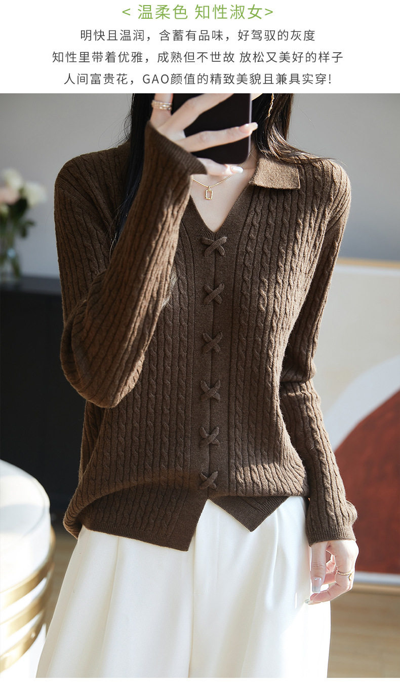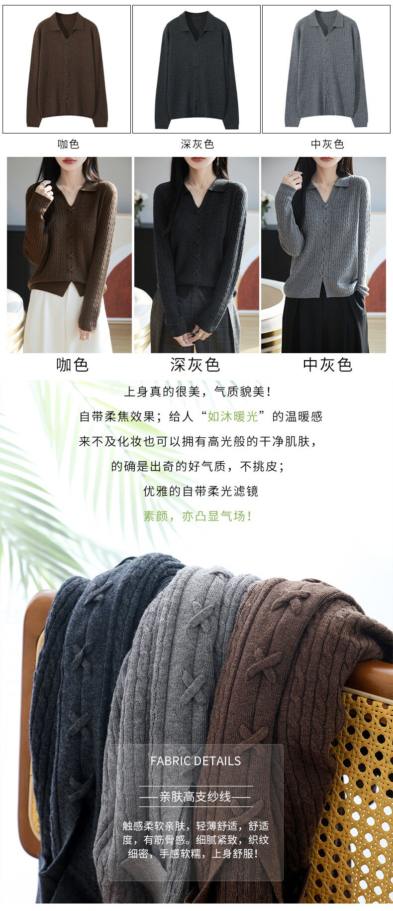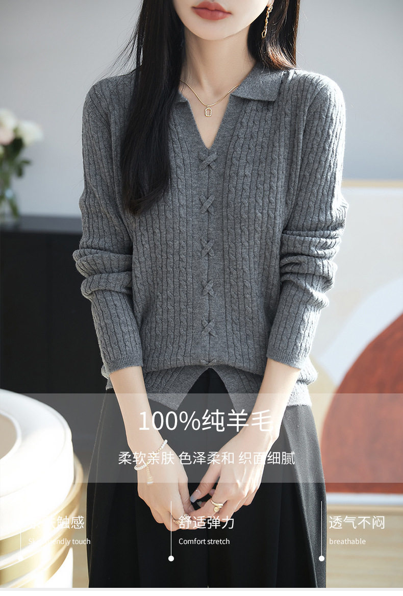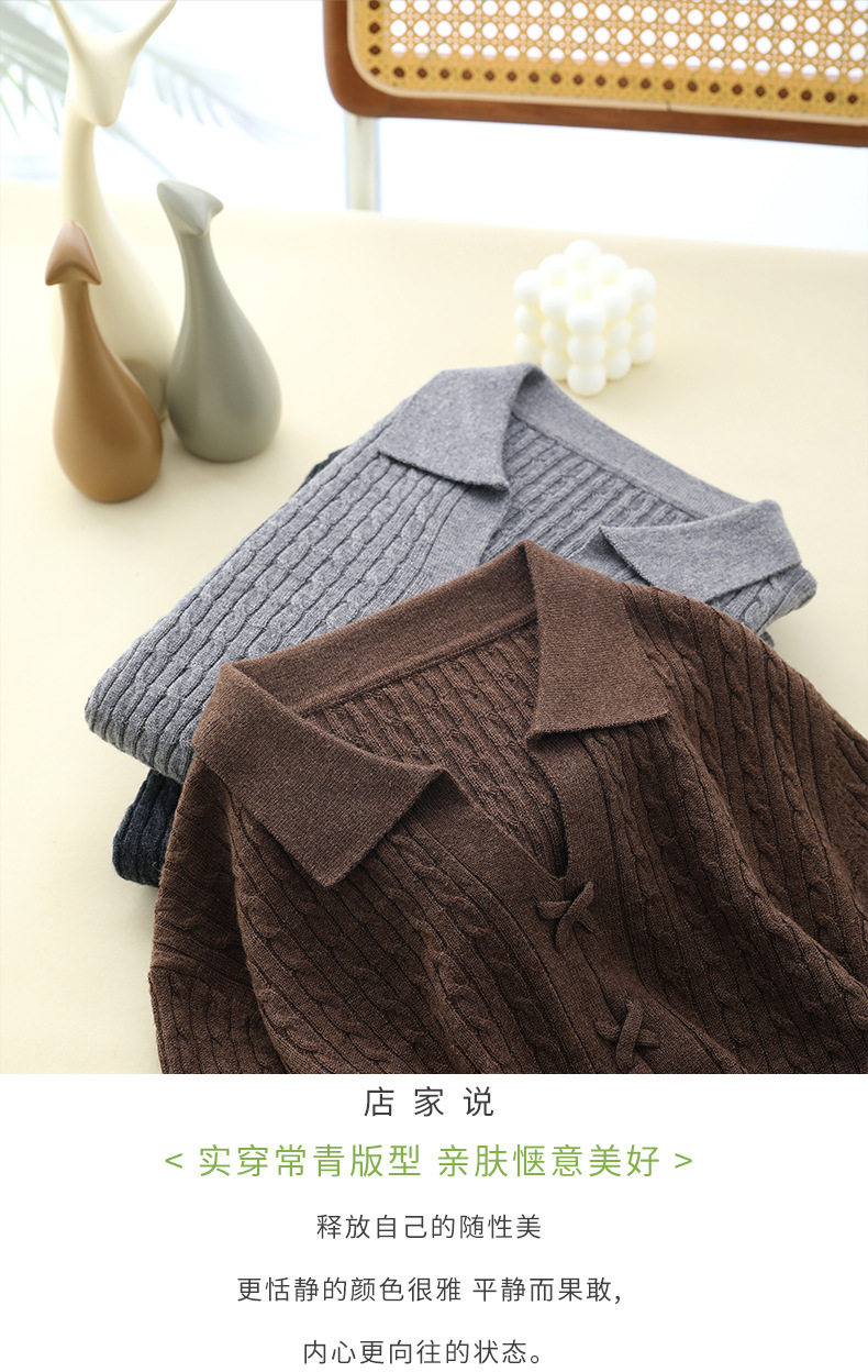 「自」全新升级【铂金会员275/天猫369/差价94】(02112)洛诗琳气质翻领羊毛上衣2026春季新款宽松百搭绞花针织衫