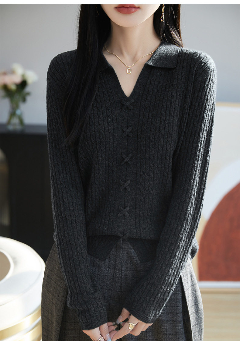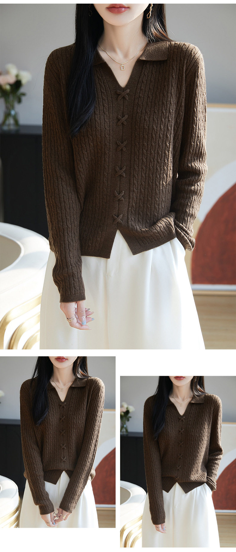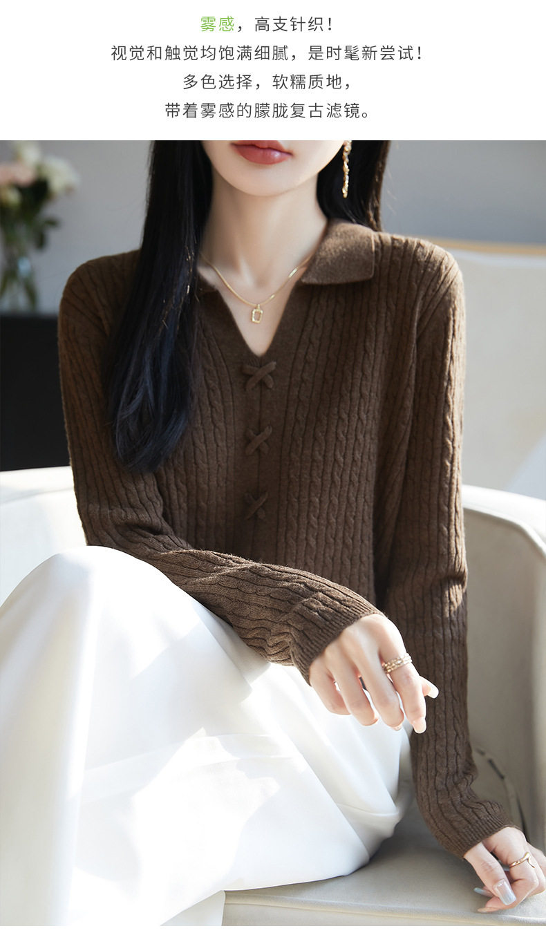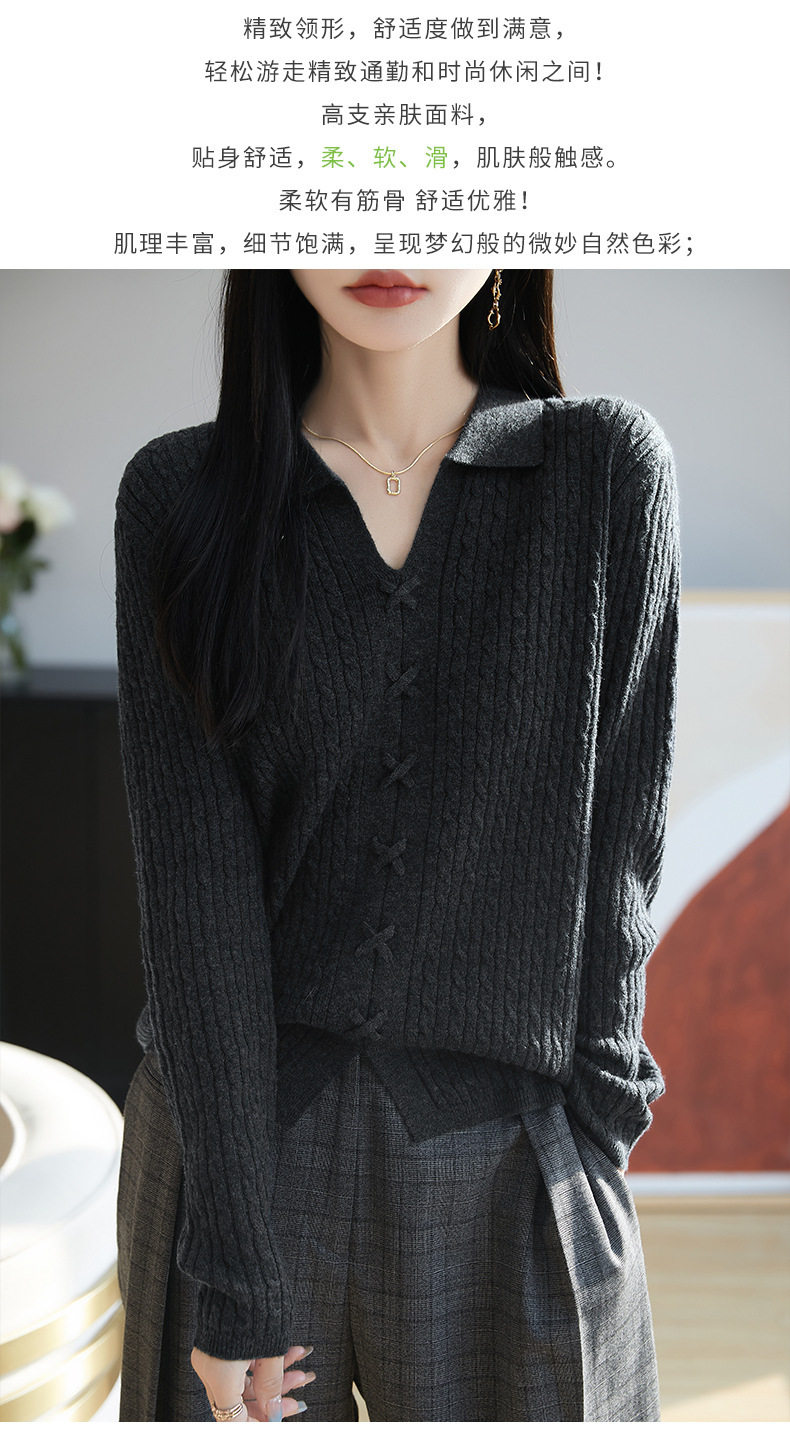 「自」全新升级【铂金会员275/天猫369/差价94】(02112)洛诗琳气质翻领羊毛上衣2026春季新款宽松百搭绞花针织衫