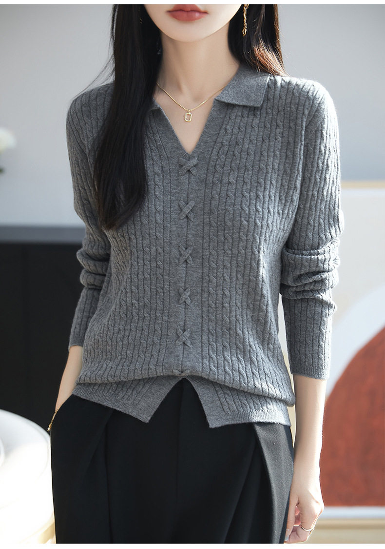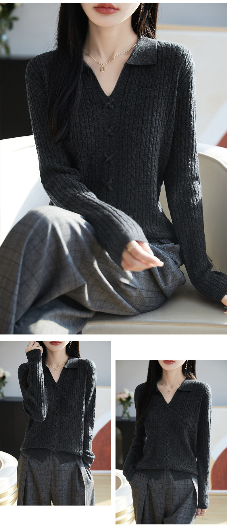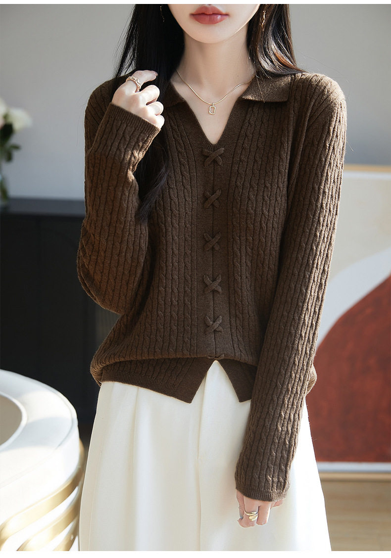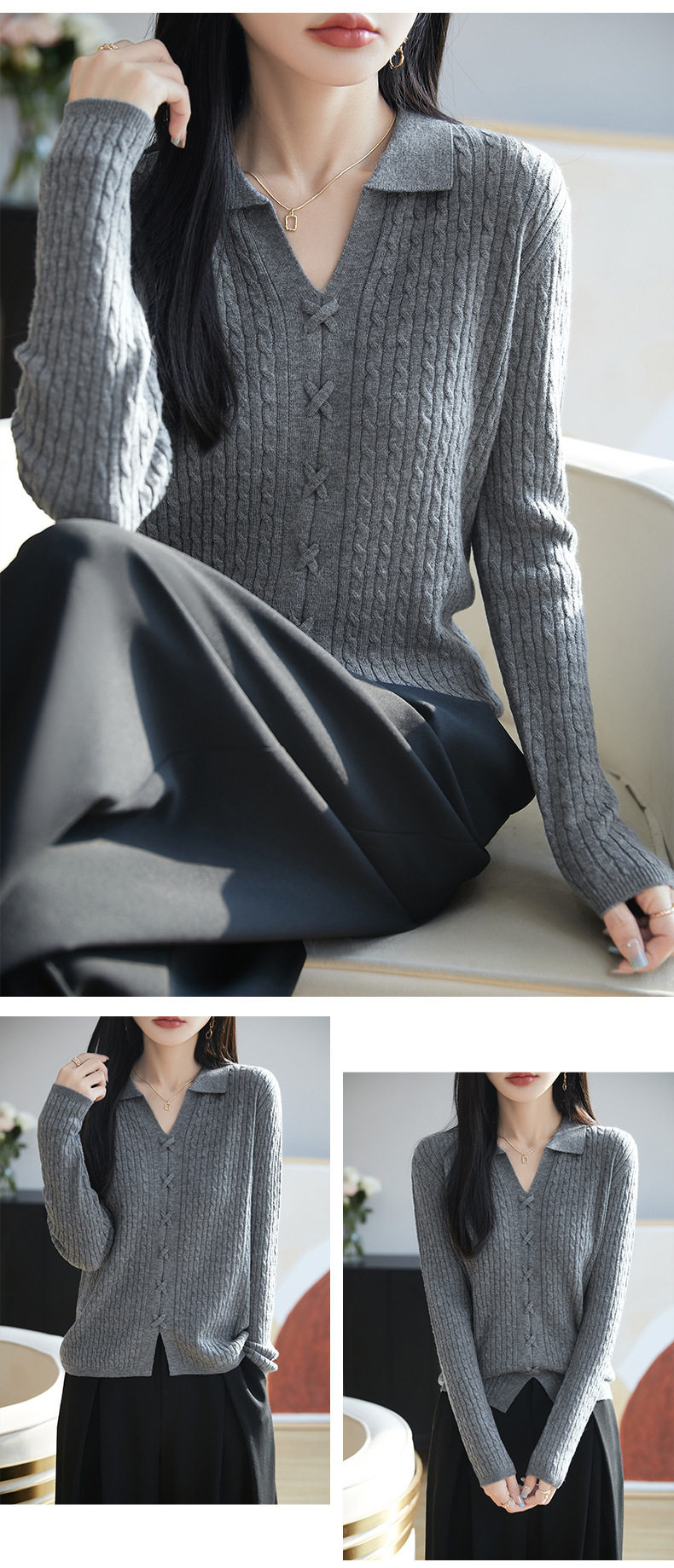 「自」全新升级【铂金会员275/天猫369/差价94】(02112)洛诗琳气质翻领羊毛上衣2026春季新款宽松百搭绞花针织衫