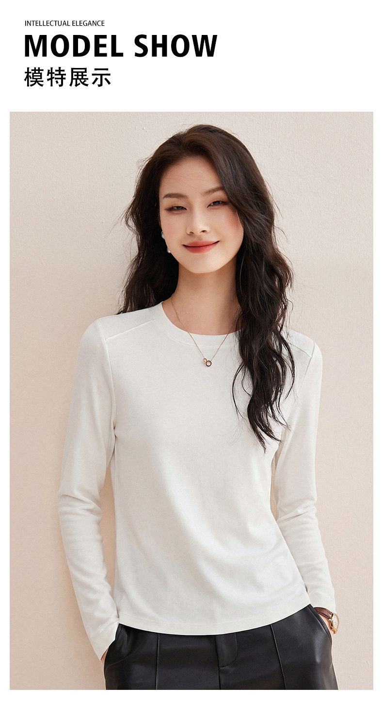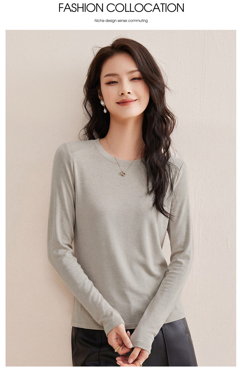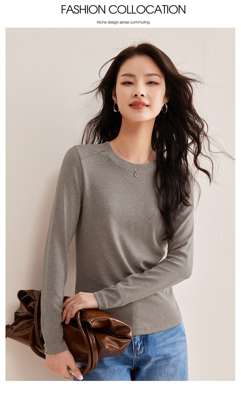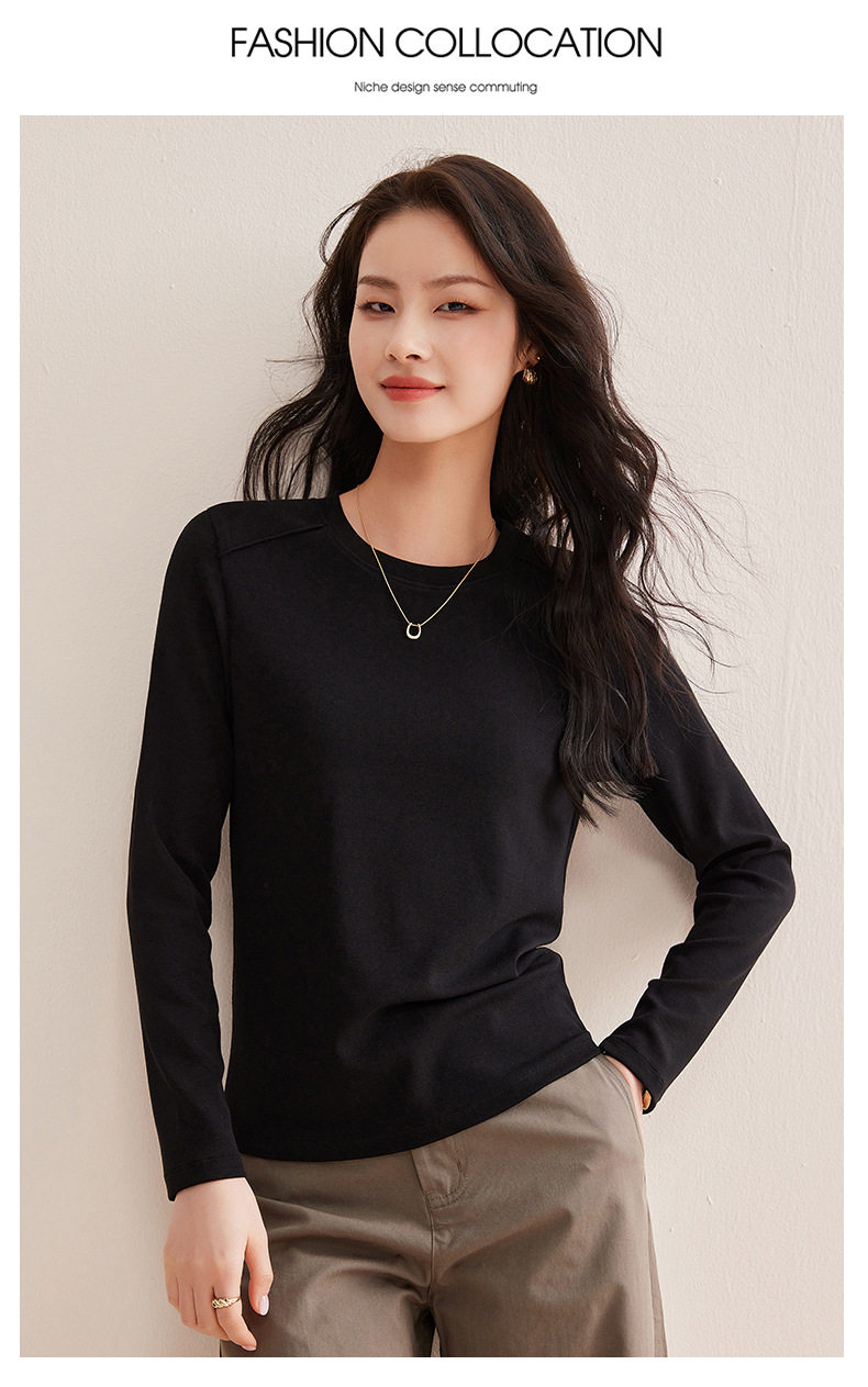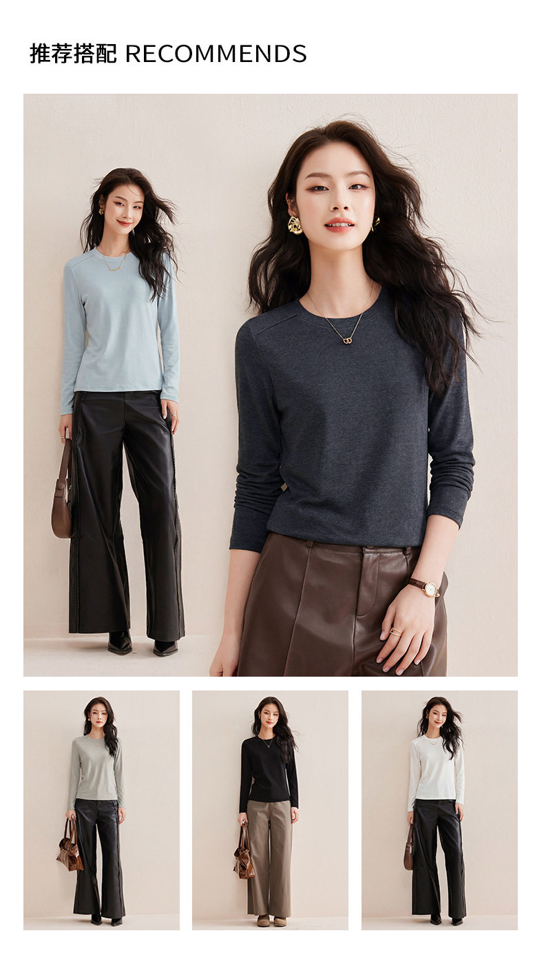 「自j」全新升级【铂金会员119/天猫159/差价40】(13014)洛诗琳含绵羊毛撞线正肩T恤2026春季新款简约设计感打底上衣