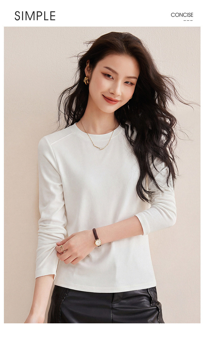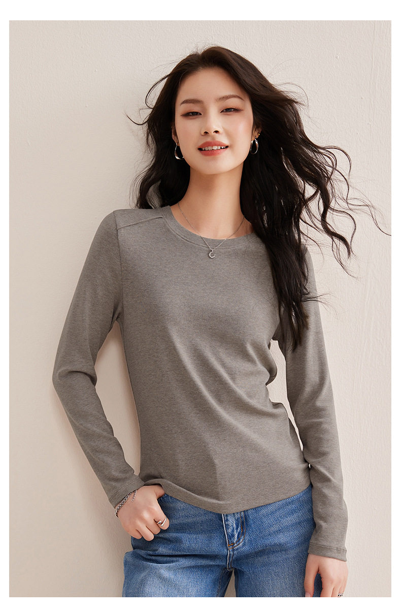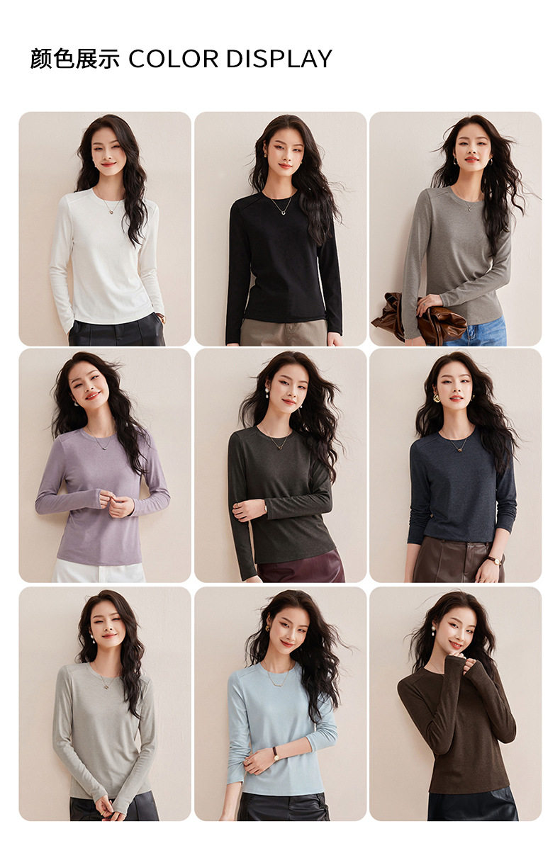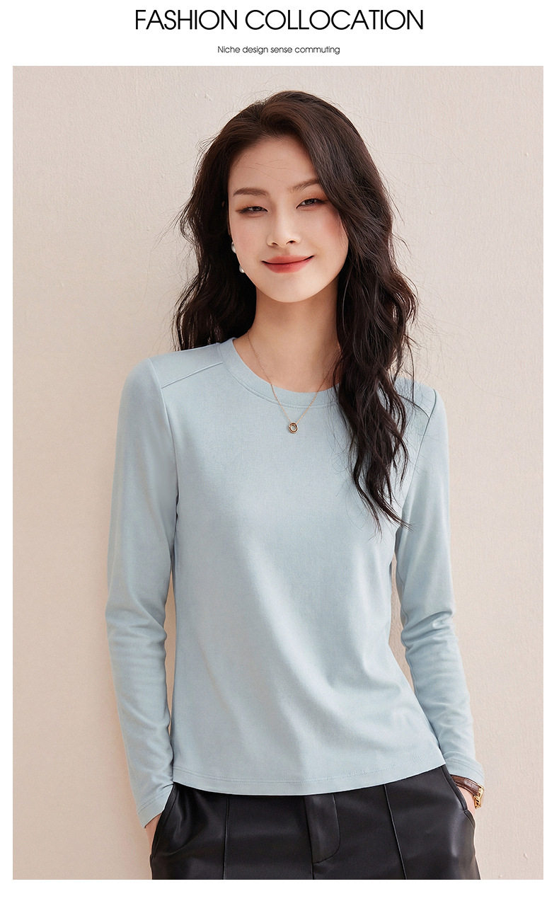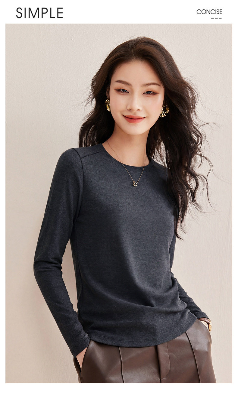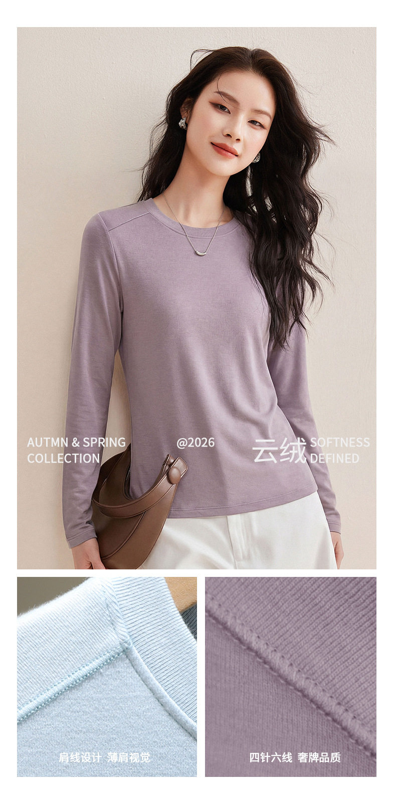 「自j」全新升级【铂金会员119/天猫159/差价40】(13014)洛诗琳含绵羊毛撞线正肩T恤2026春季新款简约设计感打底上衣