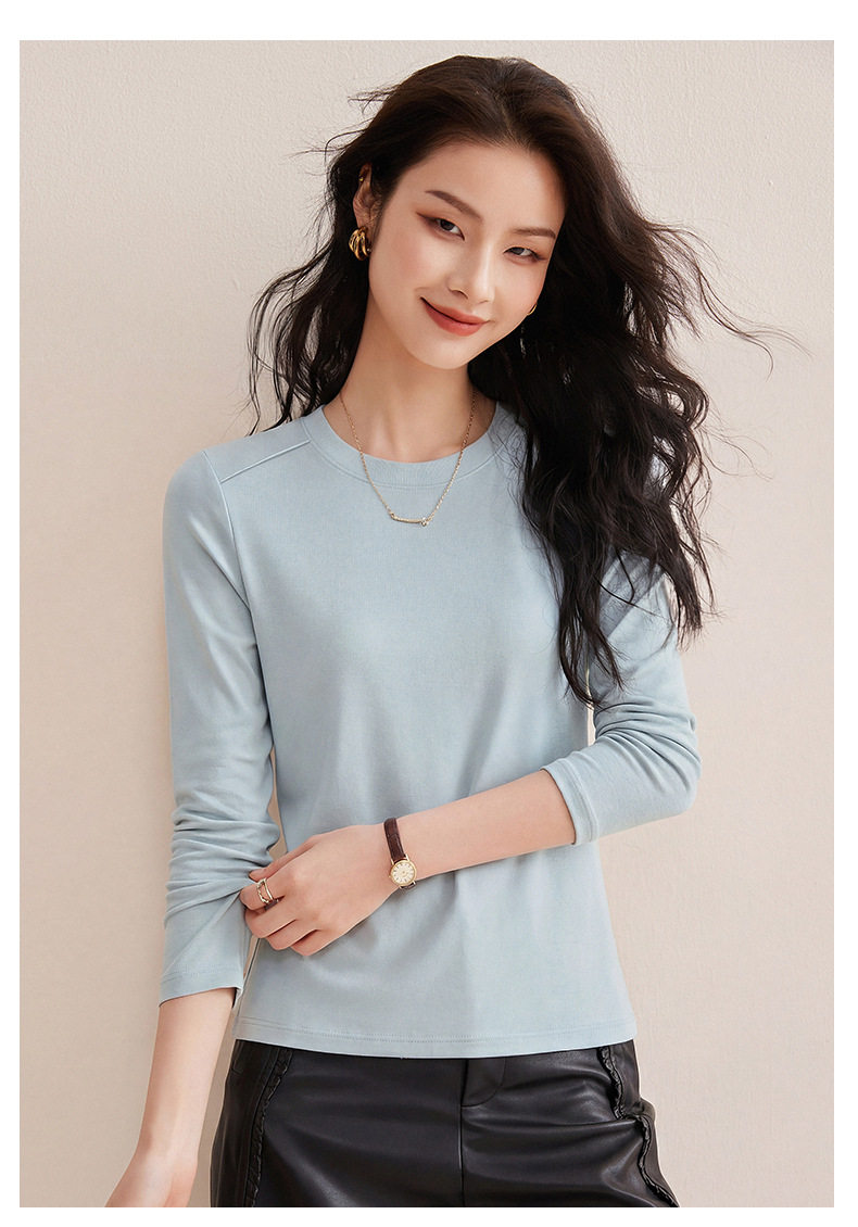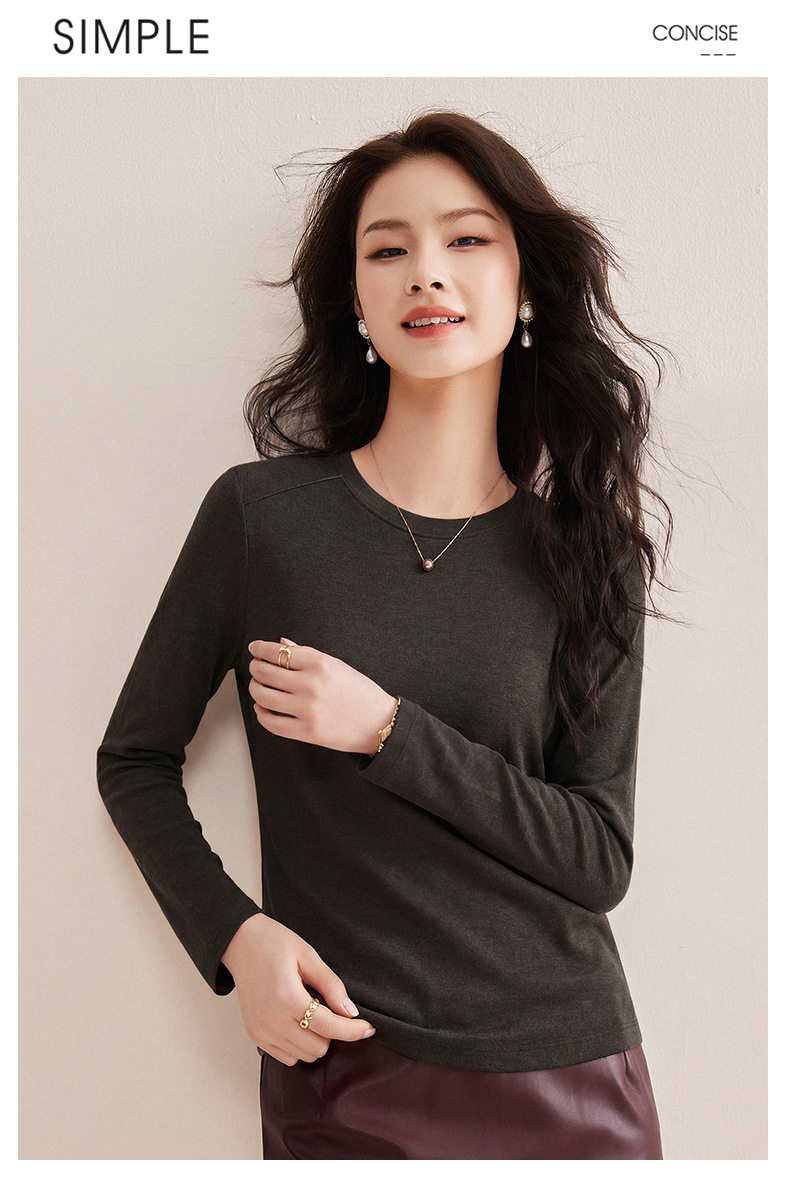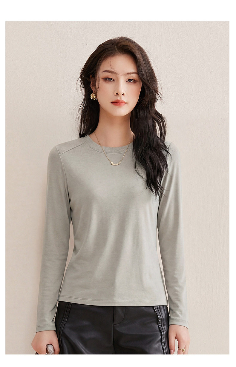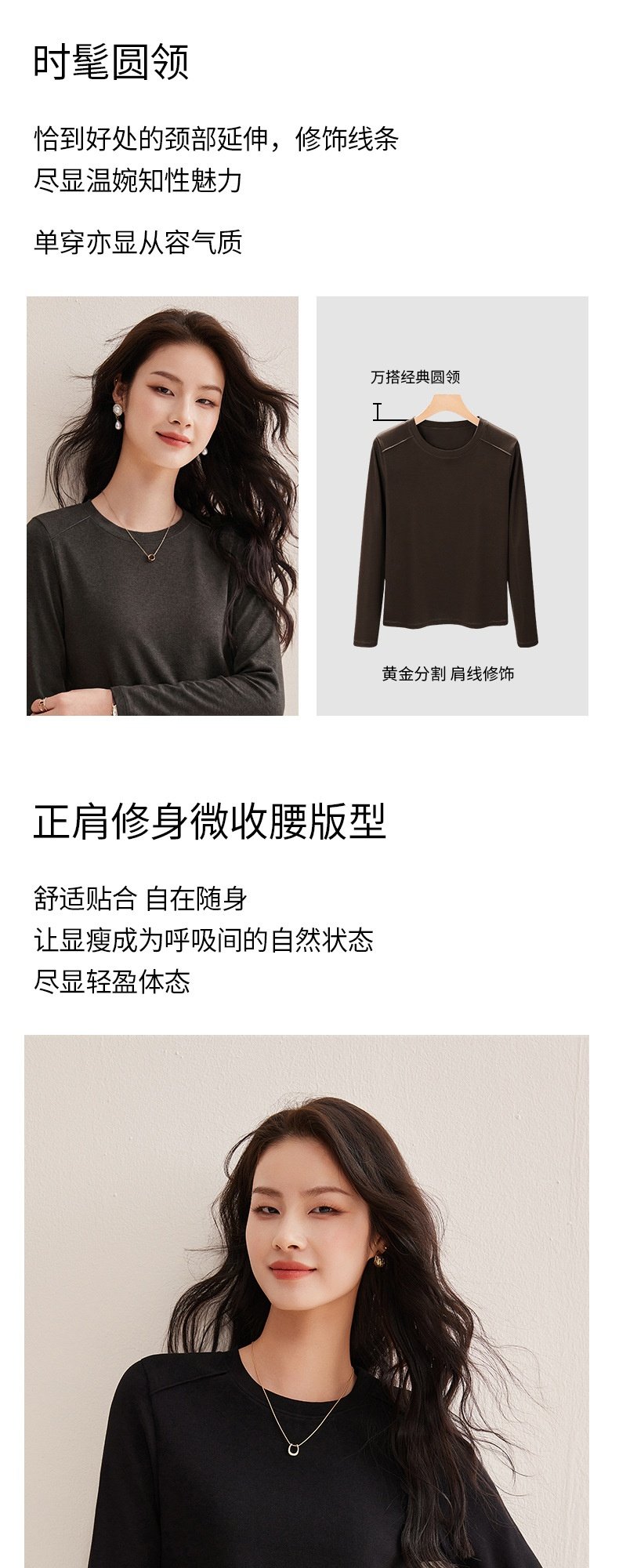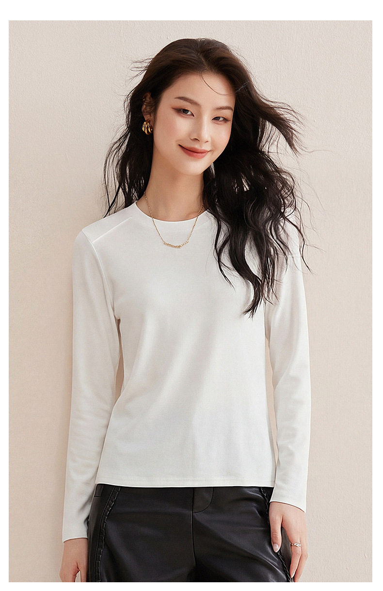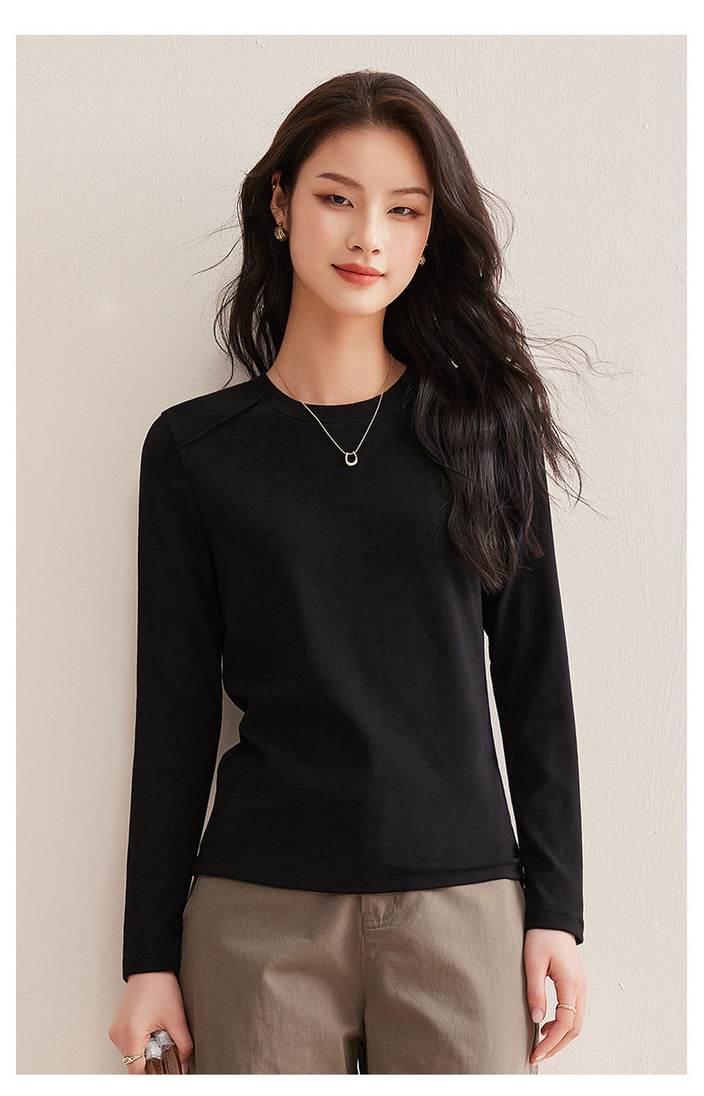 「自j」全新升级【铂金会员119/天猫159/差价40】(13014)洛诗琳含绵羊毛撞线正肩T恤2026春季新款简约设计感打底上衣