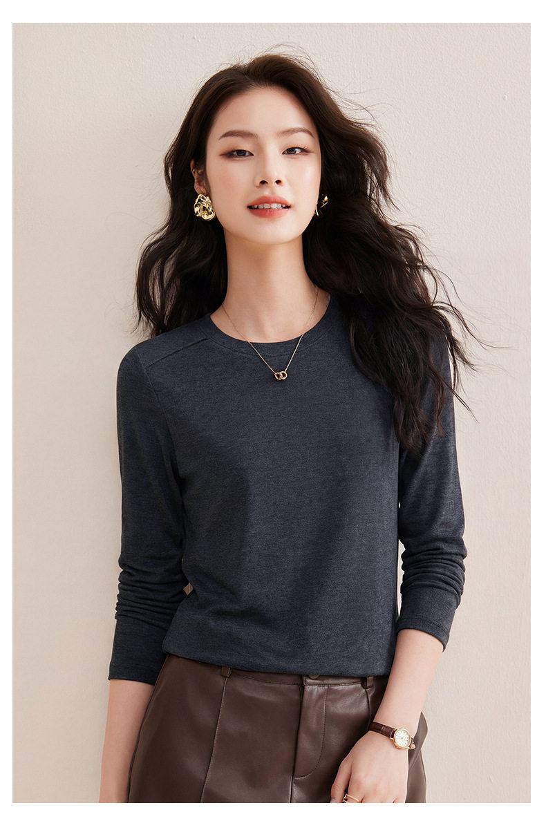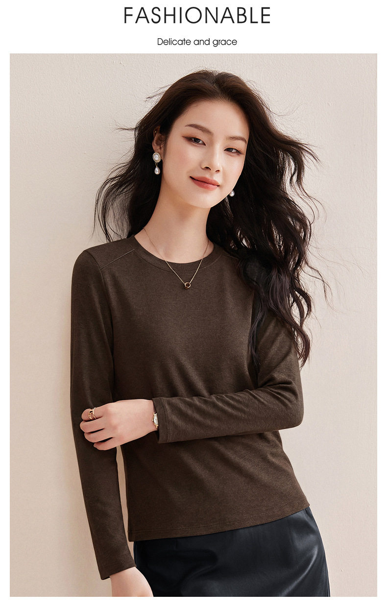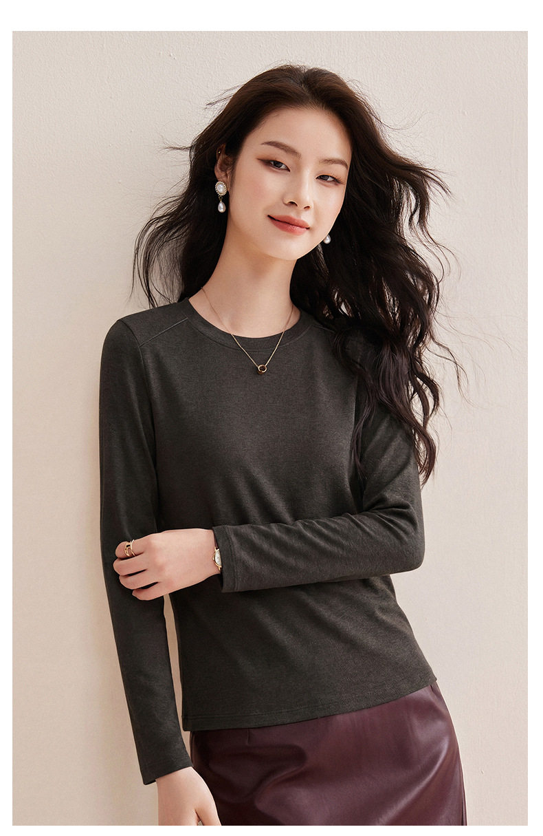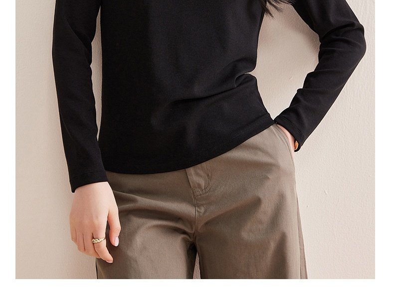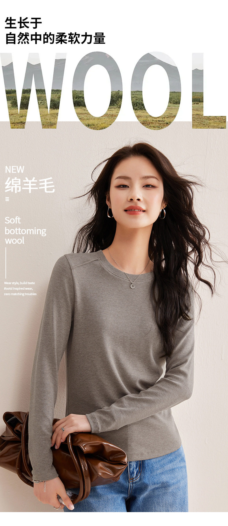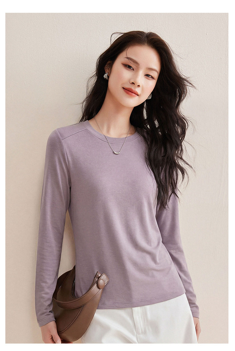 「自j」全新升级【铂金会员119/天猫159/差价40】(13014)洛诗琳含绵羊毛撞线正肩T恤2026春季新款简约设计感打底上衣