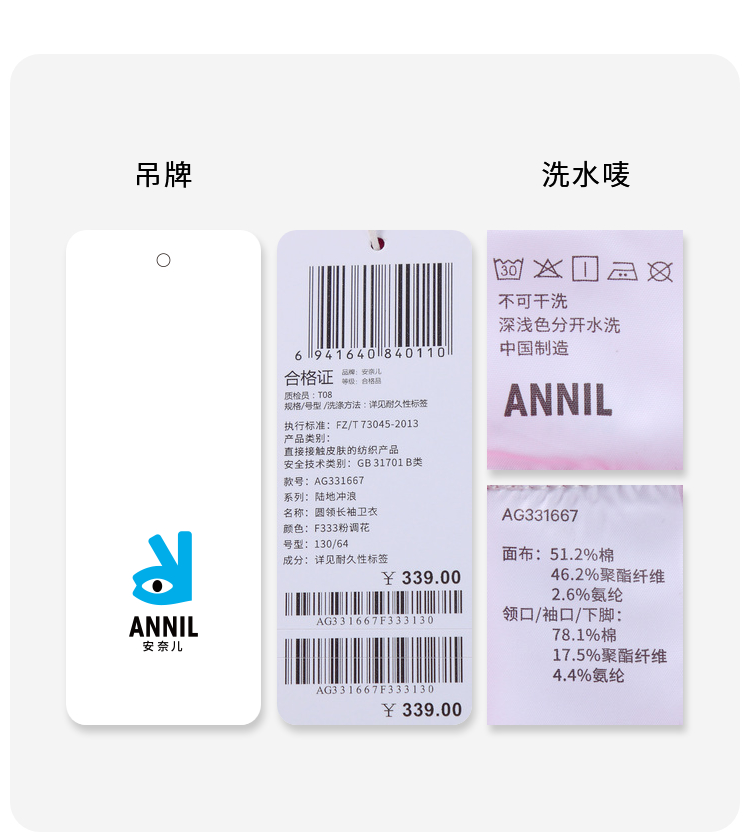 【实体店同款】女童夹丝暖卫衣休闲保暖长袖安奈儿童装AG331667