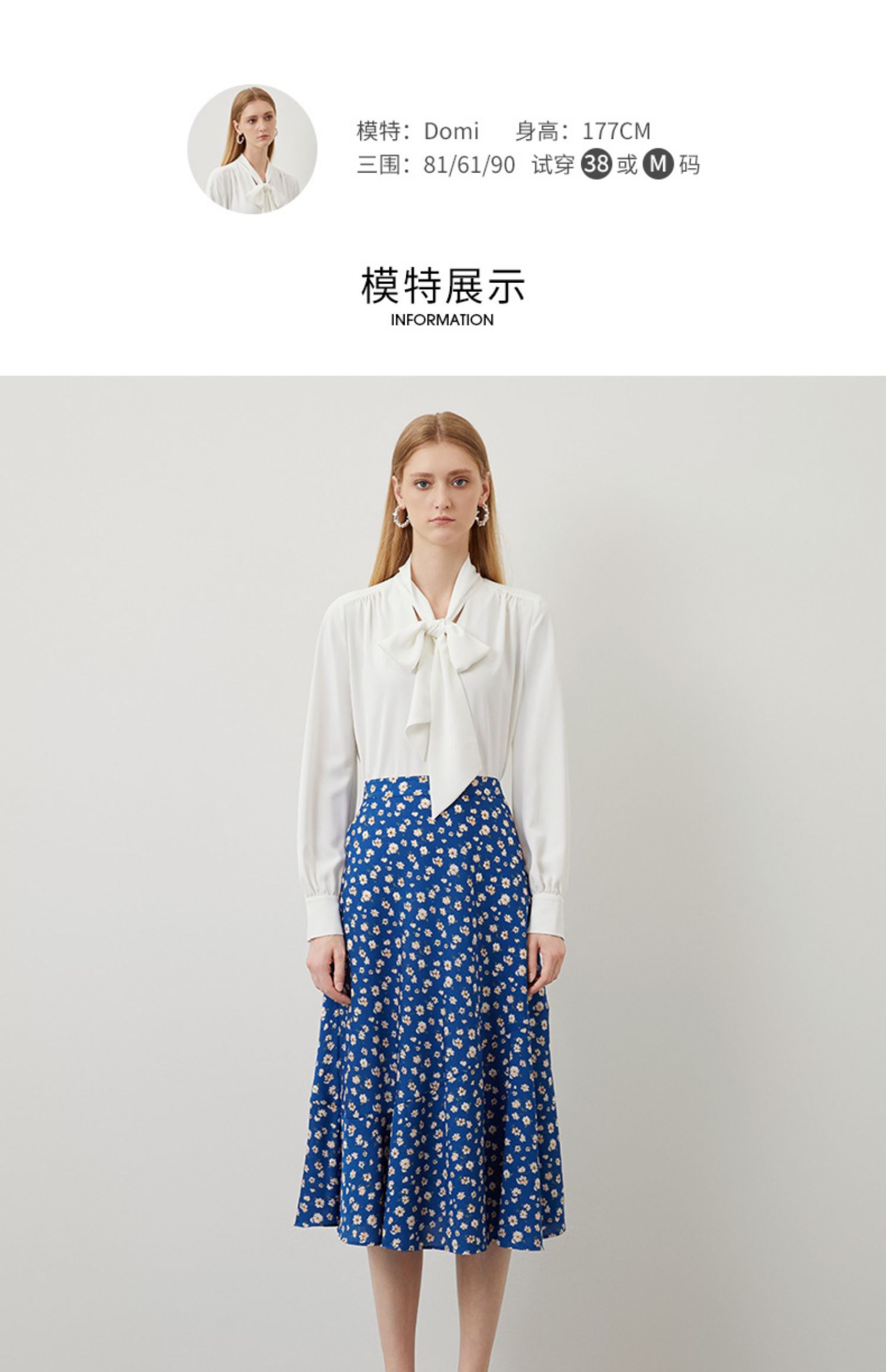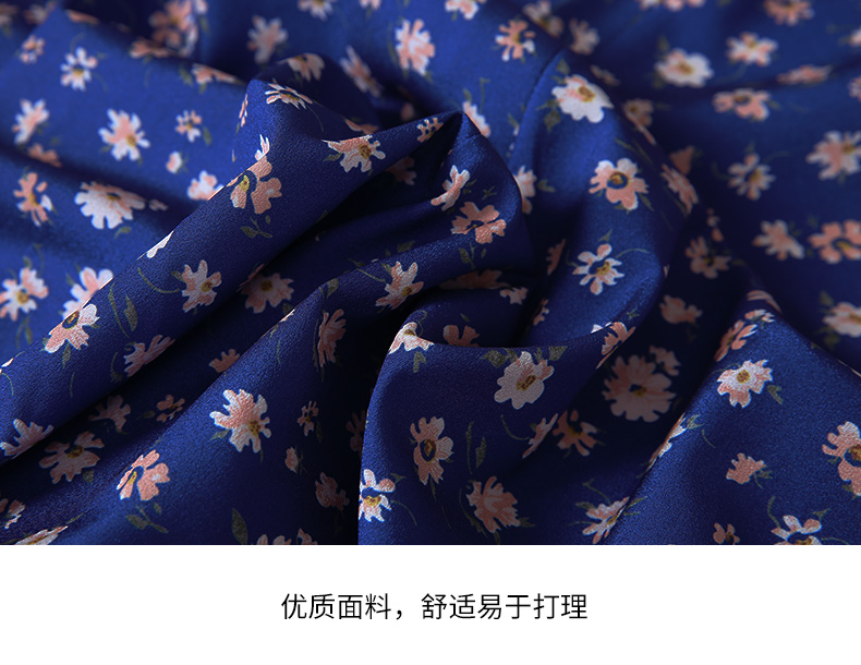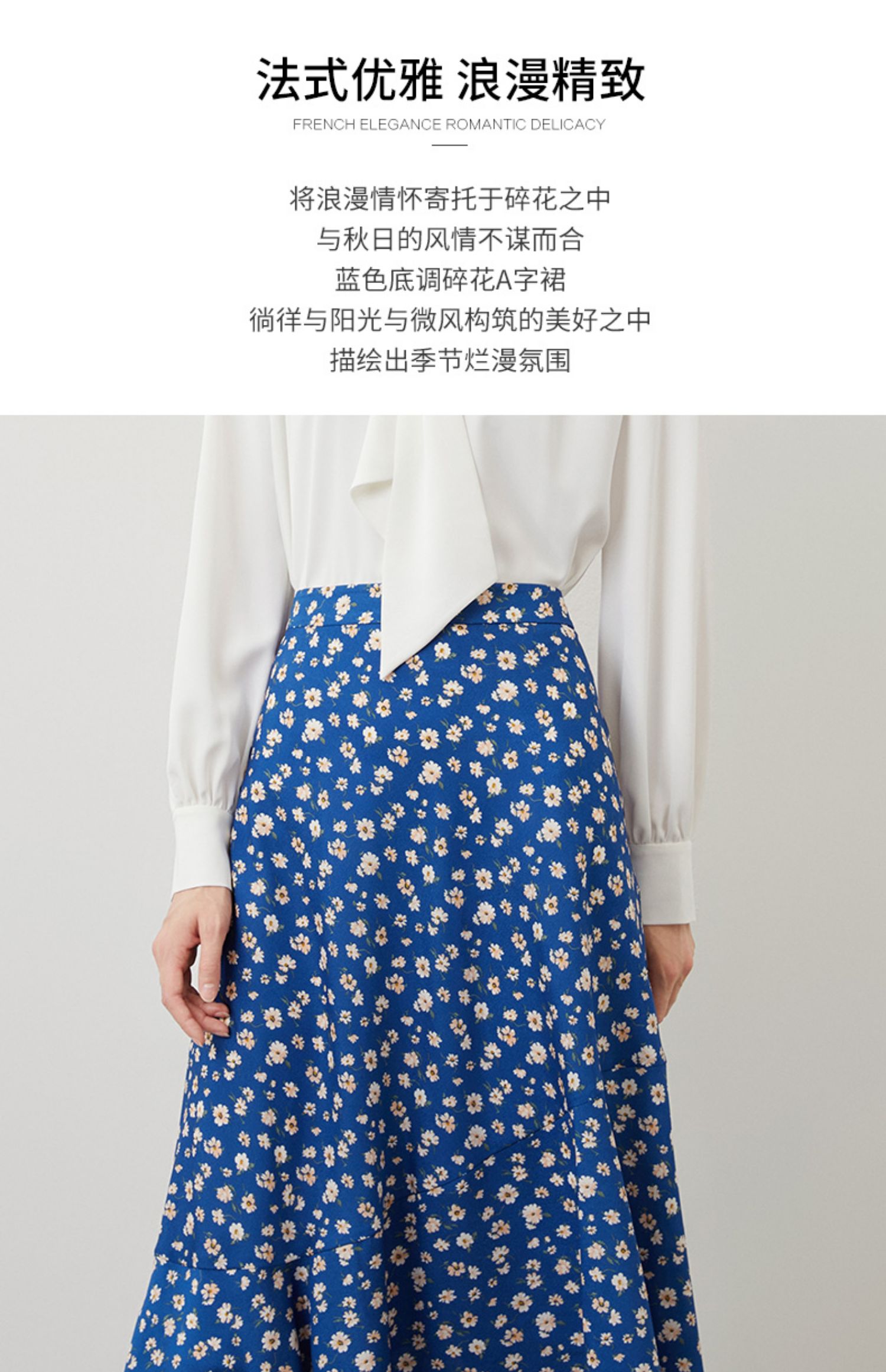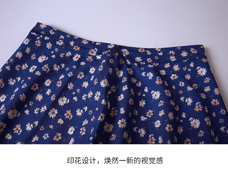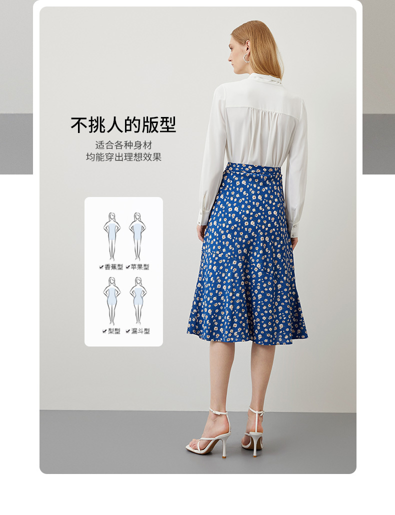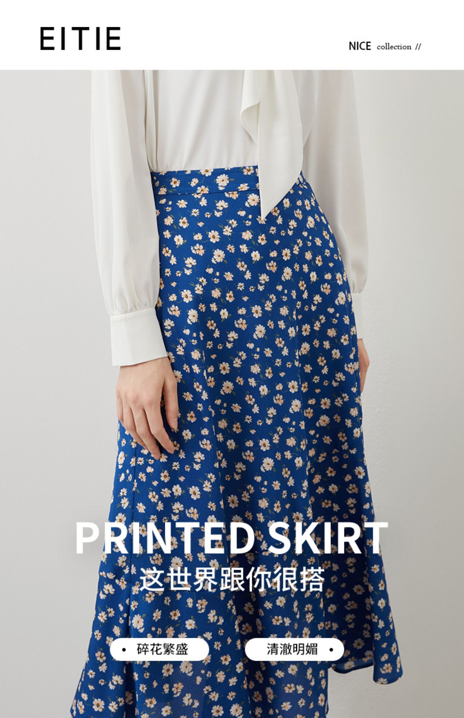 EITIE爱特爱秋季新款气质复古蓝色底调碎花A字高腰显瘦半身裙C2206012