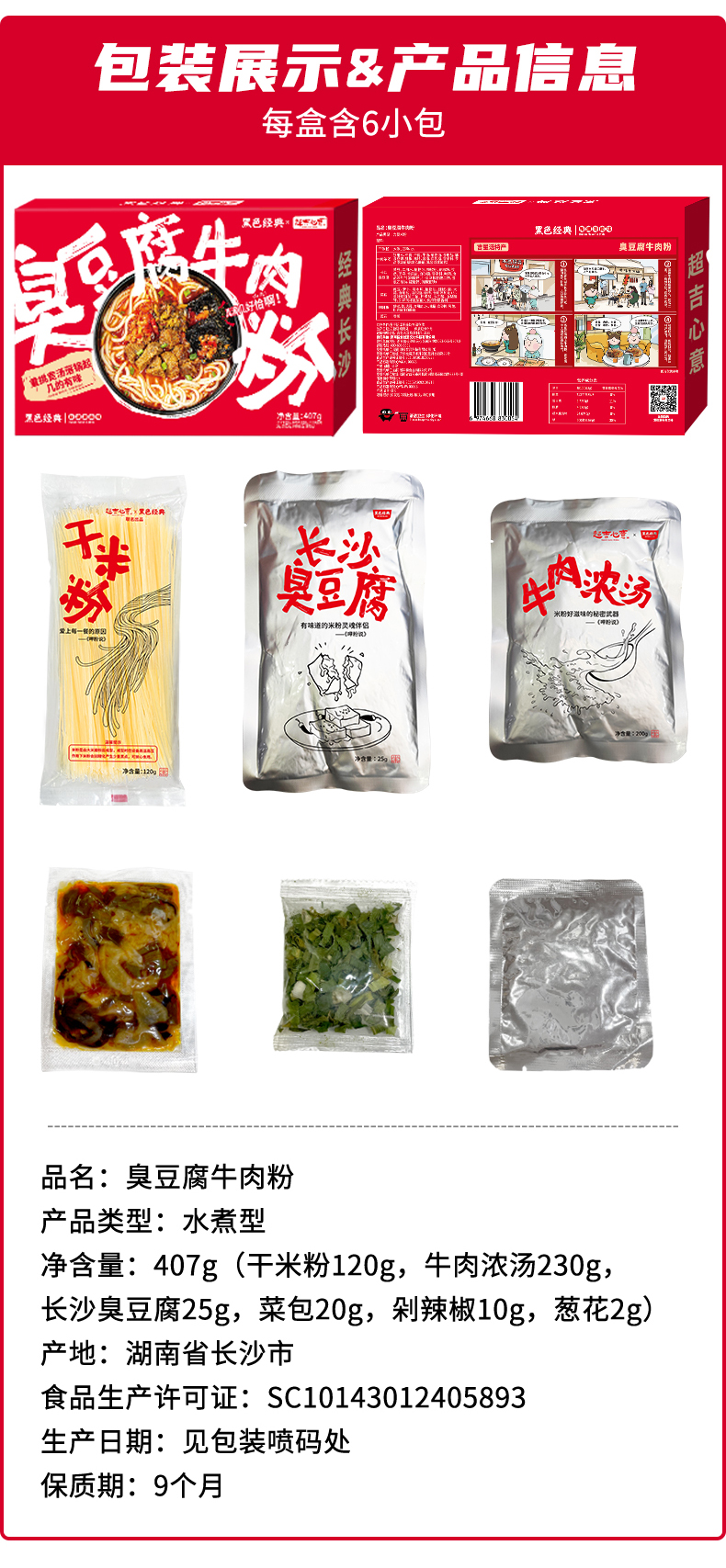 【长沙特产】超吉心意臭豆腐牛肉粉联名款407g/盒 大块牛肉看得见