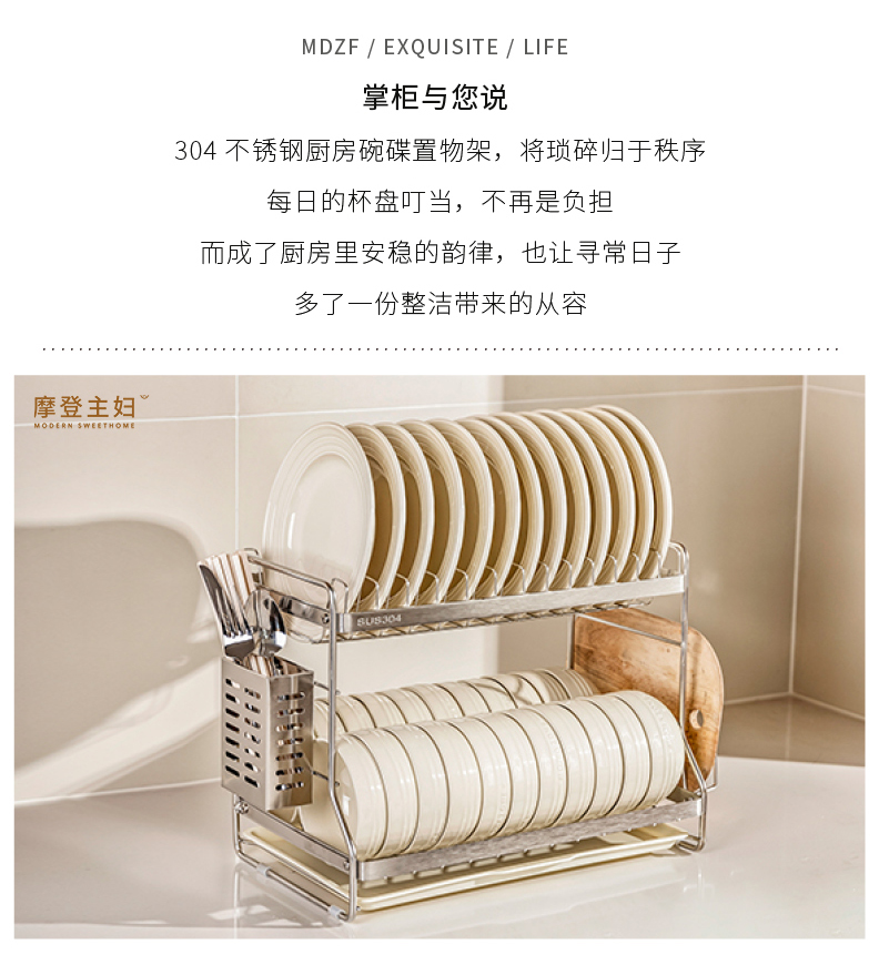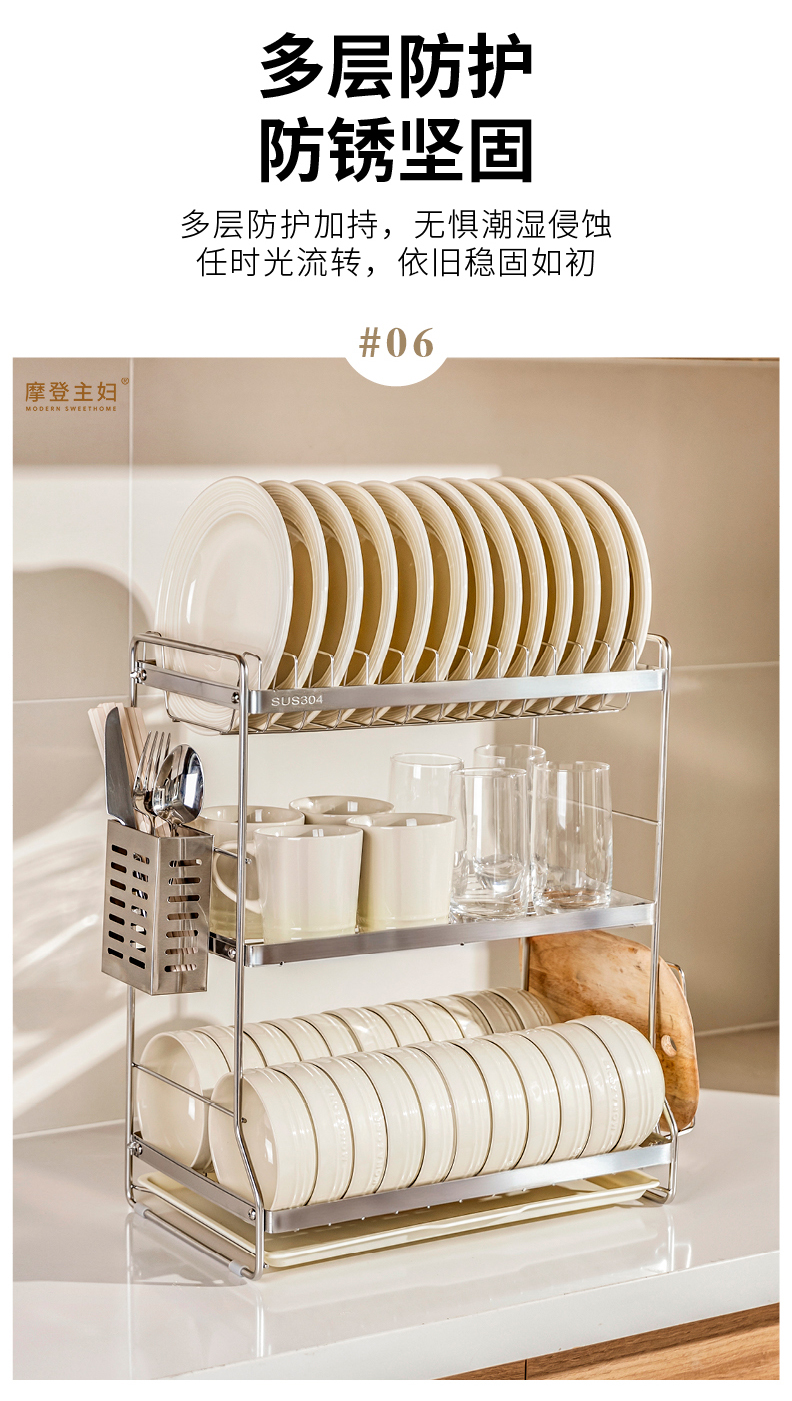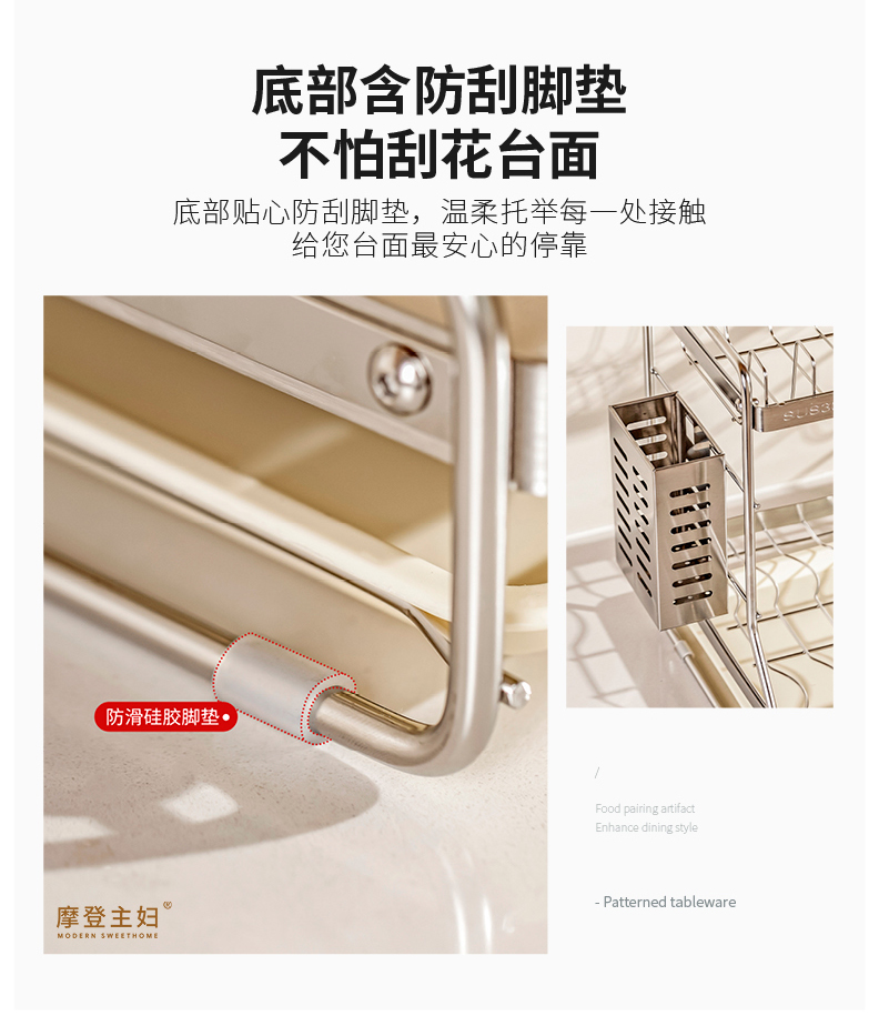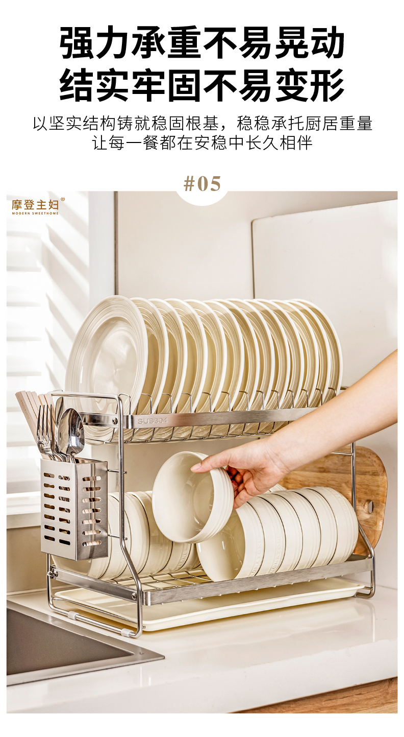 摩登主妇304不锈钢碗碟收纳架厨房多功能台面置物架碗筷盘沥水架