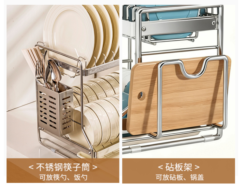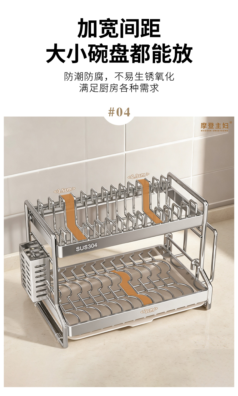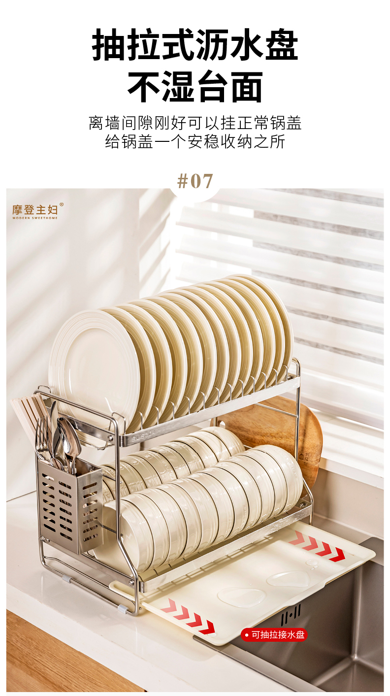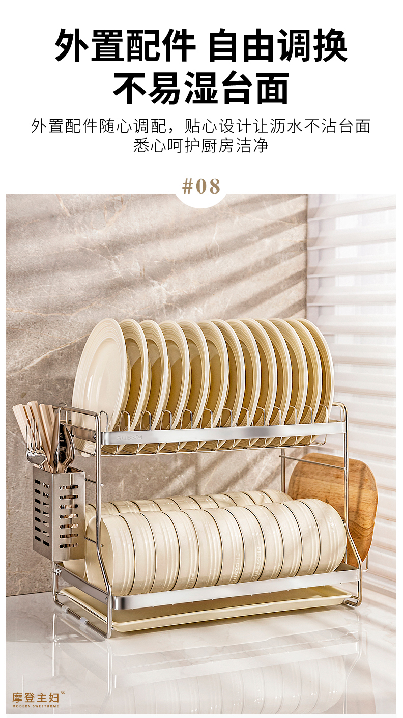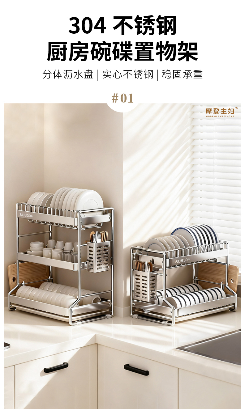 摩登主妇304不锈钢碗碟收纳架厨房多功能台面置物架碗筷盘沥水架