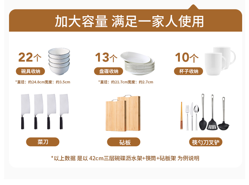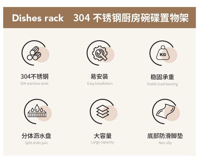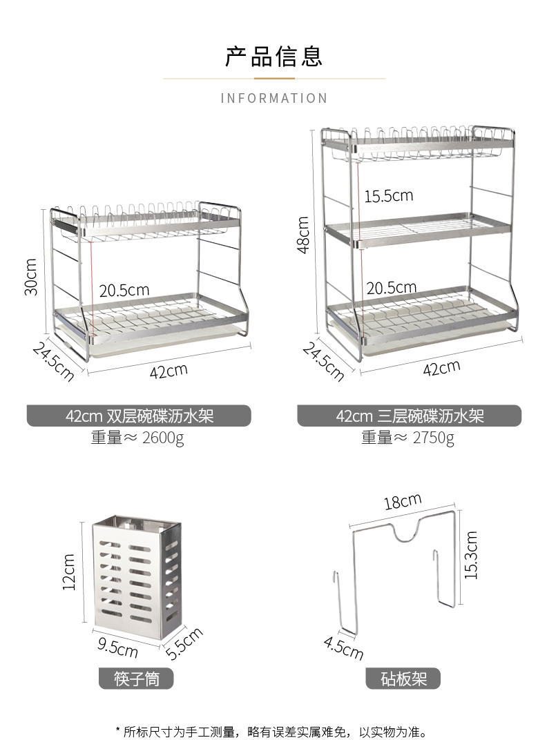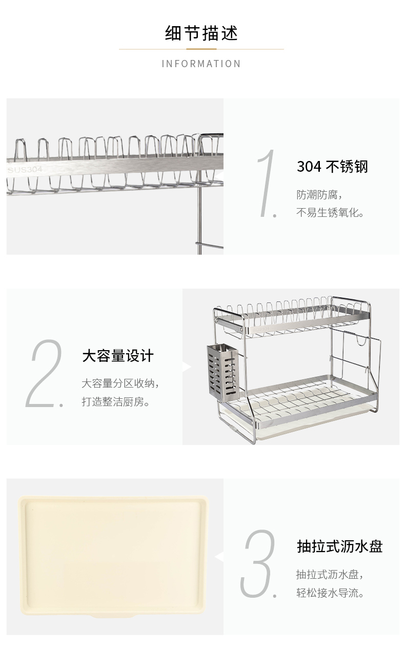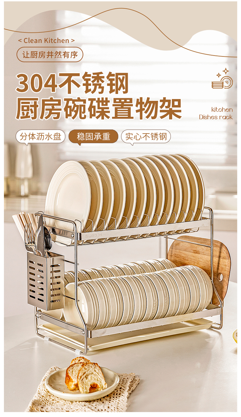 摩登主妇304不锈钢碗碟收纳架厨房多功能台面置物架碗筷盘沥水架