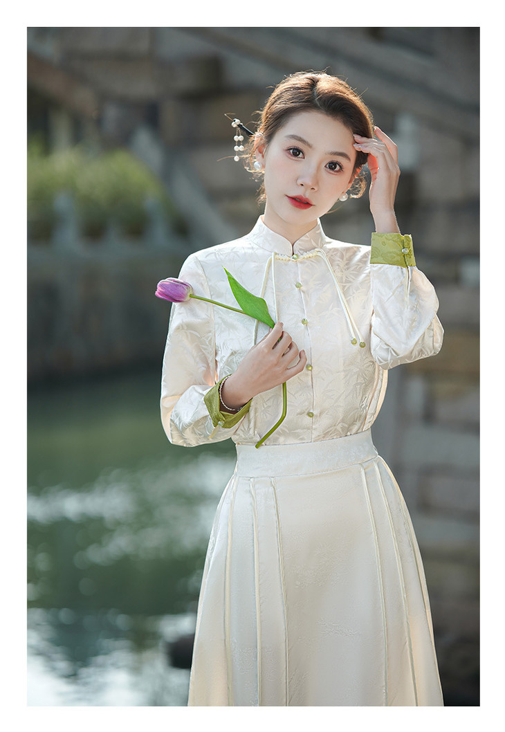 《浮雪》清新双色年轻款改良收腰冬季旗袍,减龄少女连衣裙LSB3381
