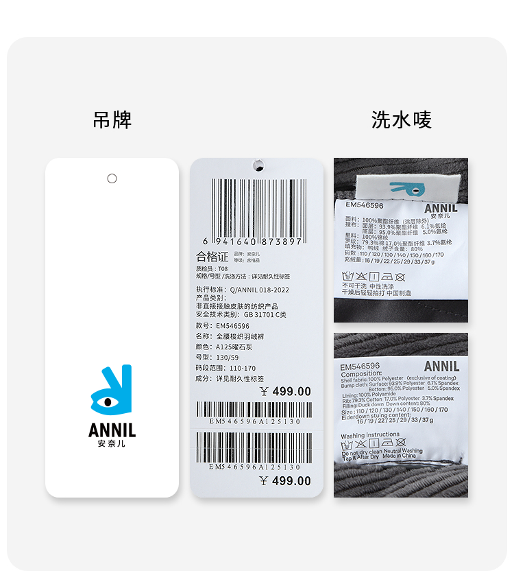 男女童全腰梭织羽绒裤冬季新款安奈儿童装EM546596