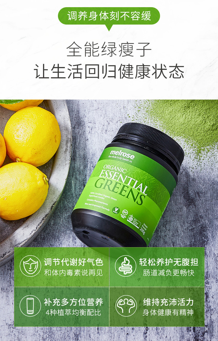 绿叶汁绿粉Melrose全能绿瘦子澳洲大麦苗粉 大麦若叶青汁小麦草粉