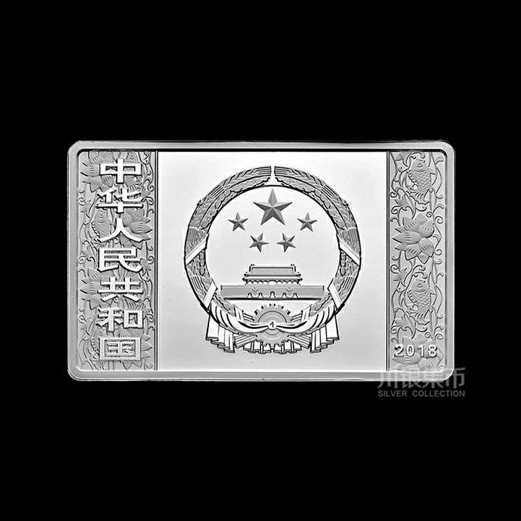 【规格及发行量】150克长方形银质纪念币为精制币,含纯银150克,规格80毫米×50毫米,面额50元,成色99.9%,发行量20000枚。