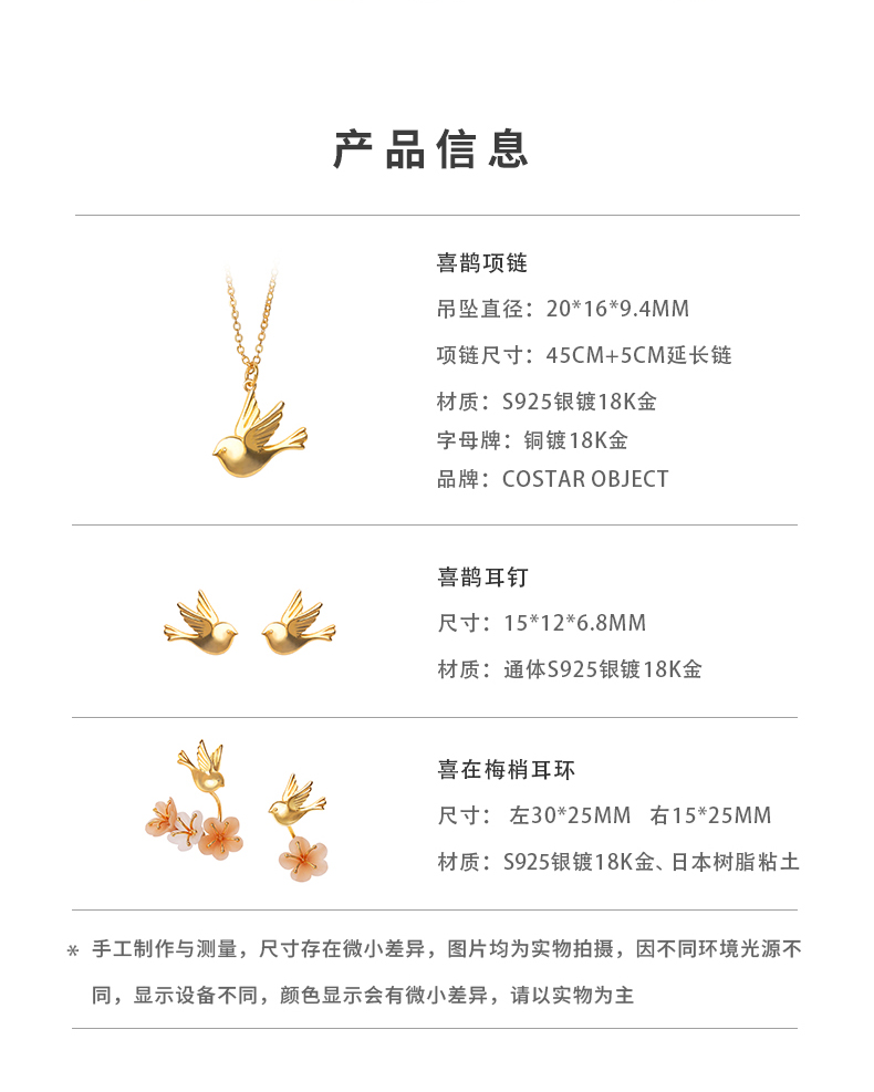 诗意精选 | COSTAR 喜鹊项链耳钉耳环系列