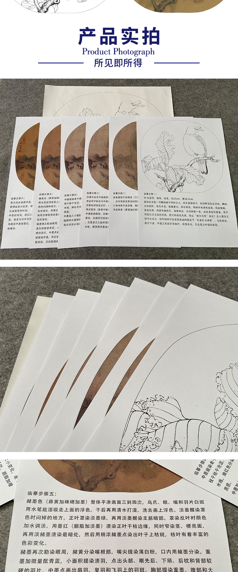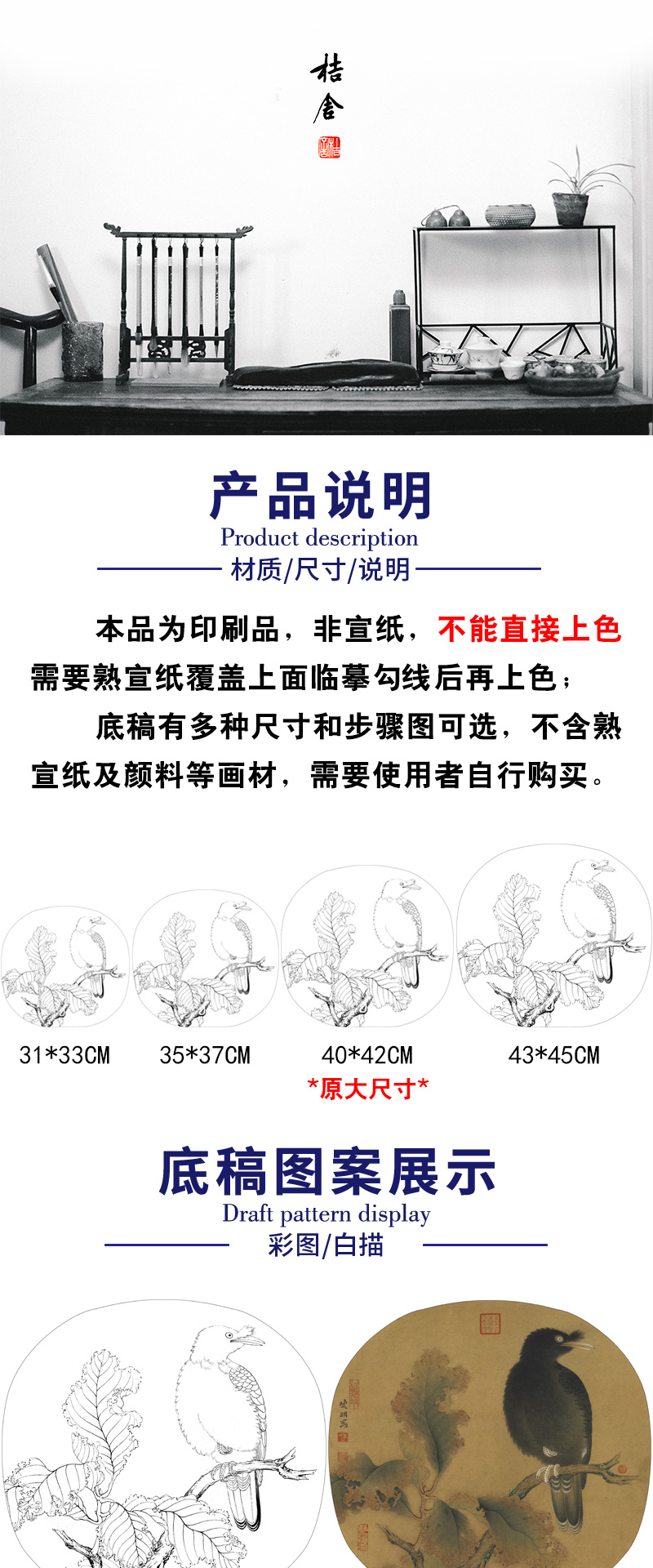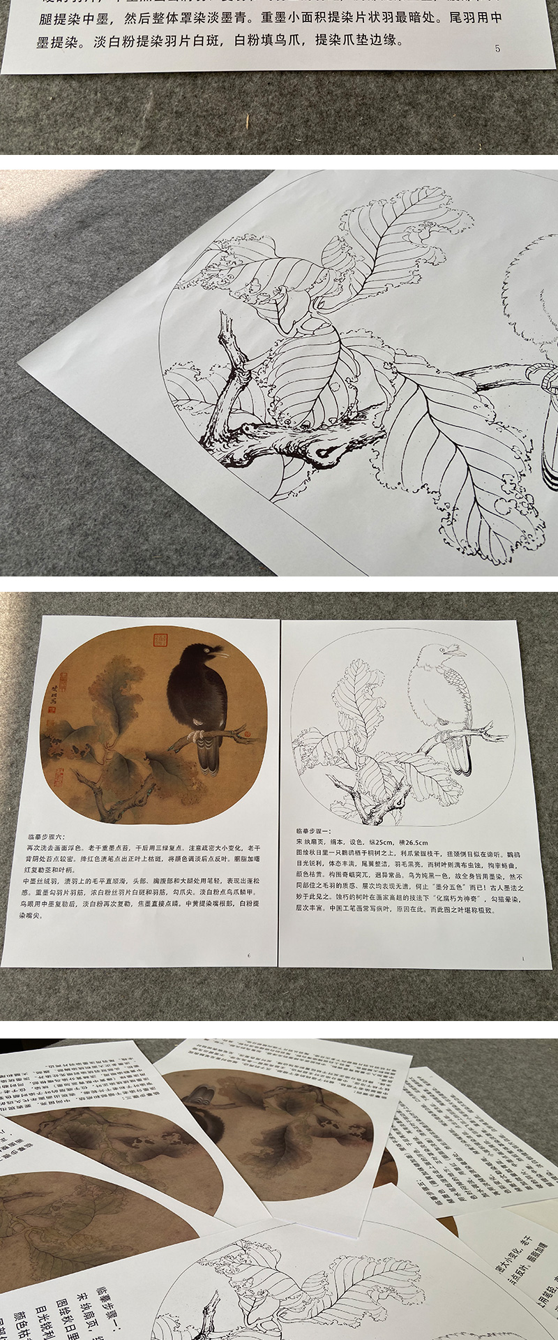 【有步骤、大彩图】李晓明工笔画白描底稿圆形小品《临宋枯树八哥图》初学者临摹花鸟线稿KC03