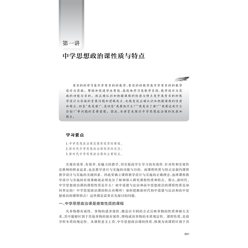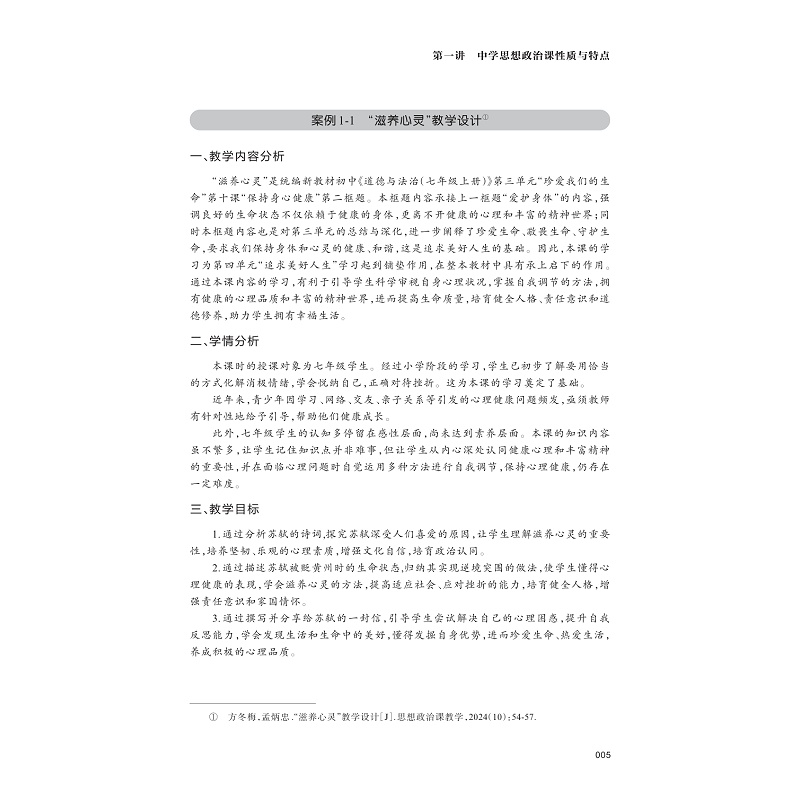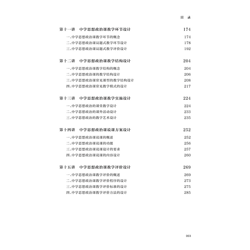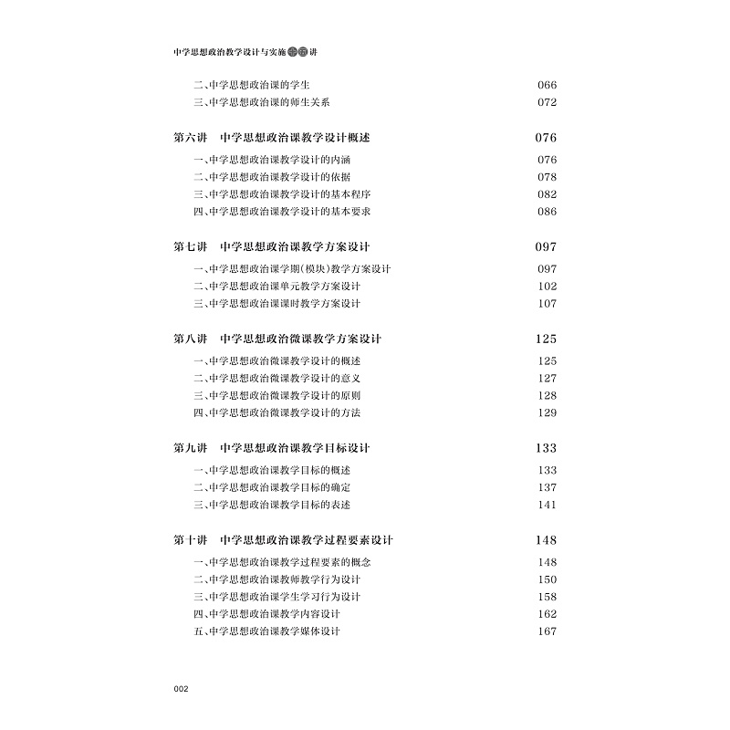 本书是“湖州师范学院研究生教育教学建设项目”研究成果。系统总结新颖实用的中学思想政治学科教学设计理论和方法,着力构建新时代具有中学思想政治学科特色的教学设计与实施理论框架和操作模式,内容包括中学思想政治课程概述(第1-4讲)、中学思想政治的教学主体(第5讲)、中学思想政治教学方案设计(第8讲)、中学思想政治备课设计(第9讲)、中学思想政治说课设计(第10讲)、中学思想政治教学要素设计(第11讲)、中学思想政治教学目标设计(第12讲)、中学思想政治教学过程设计(第13讲)、中学思想政治教学实施艺术(第14讲)、中学思想政治教学评价设计(第15讲)等十五讲。