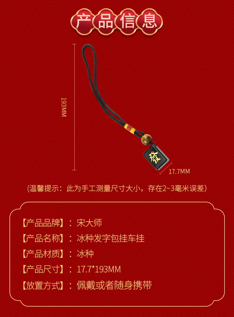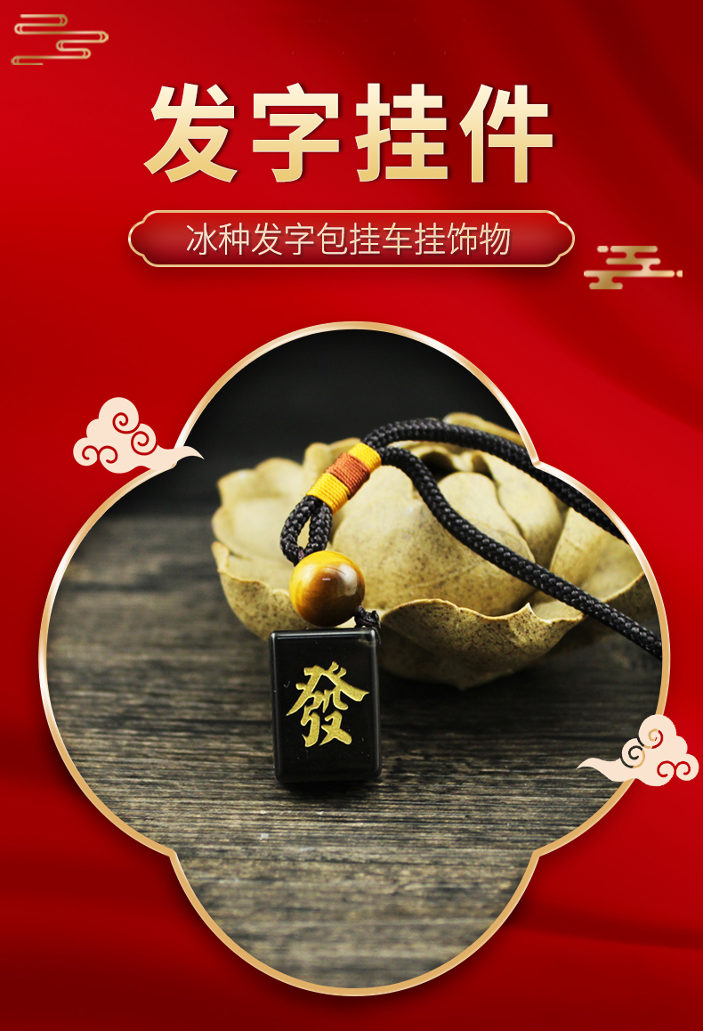 宋韶光大师 新款方形冰种发字车挂钥匙扣包挂麻将图纹挂件