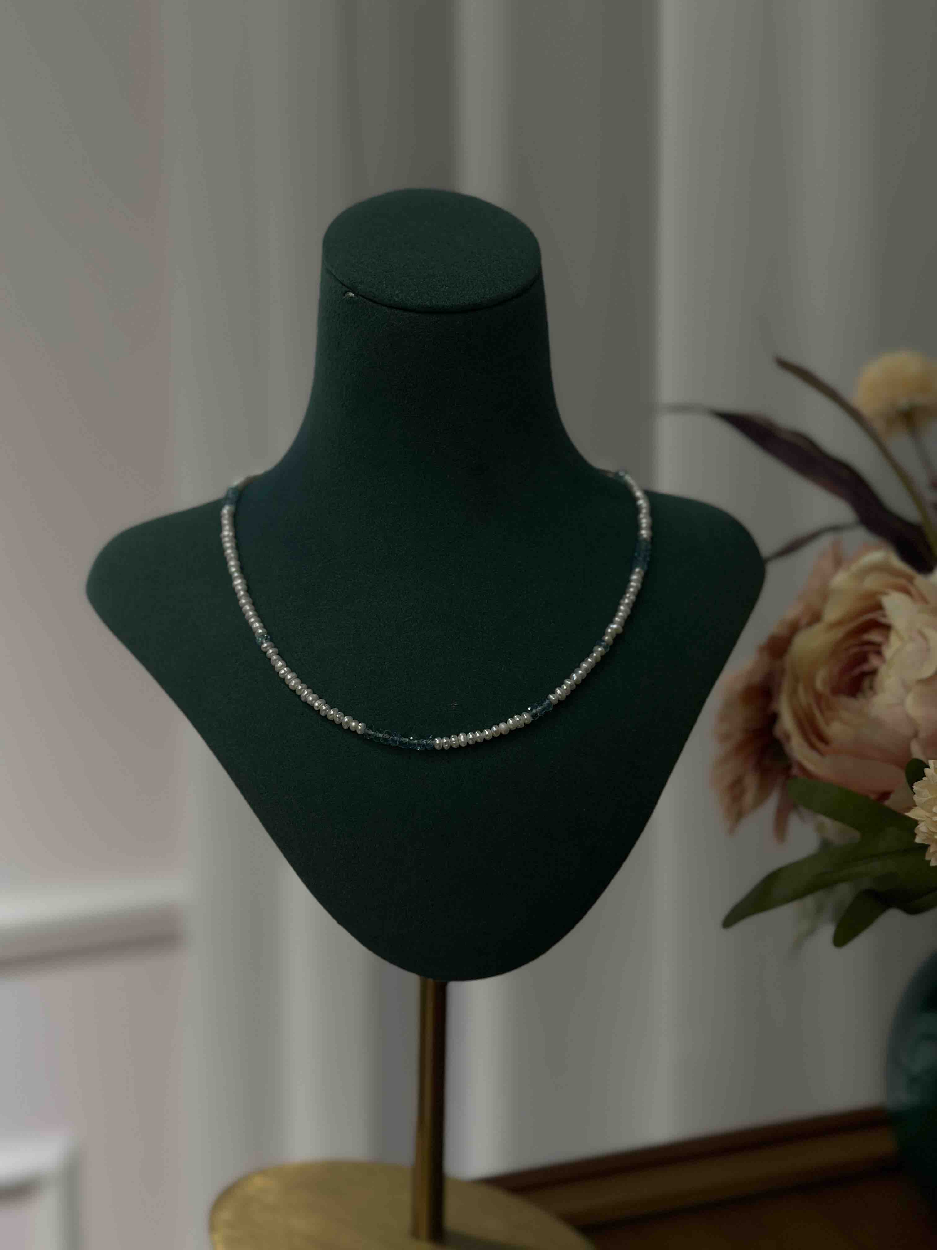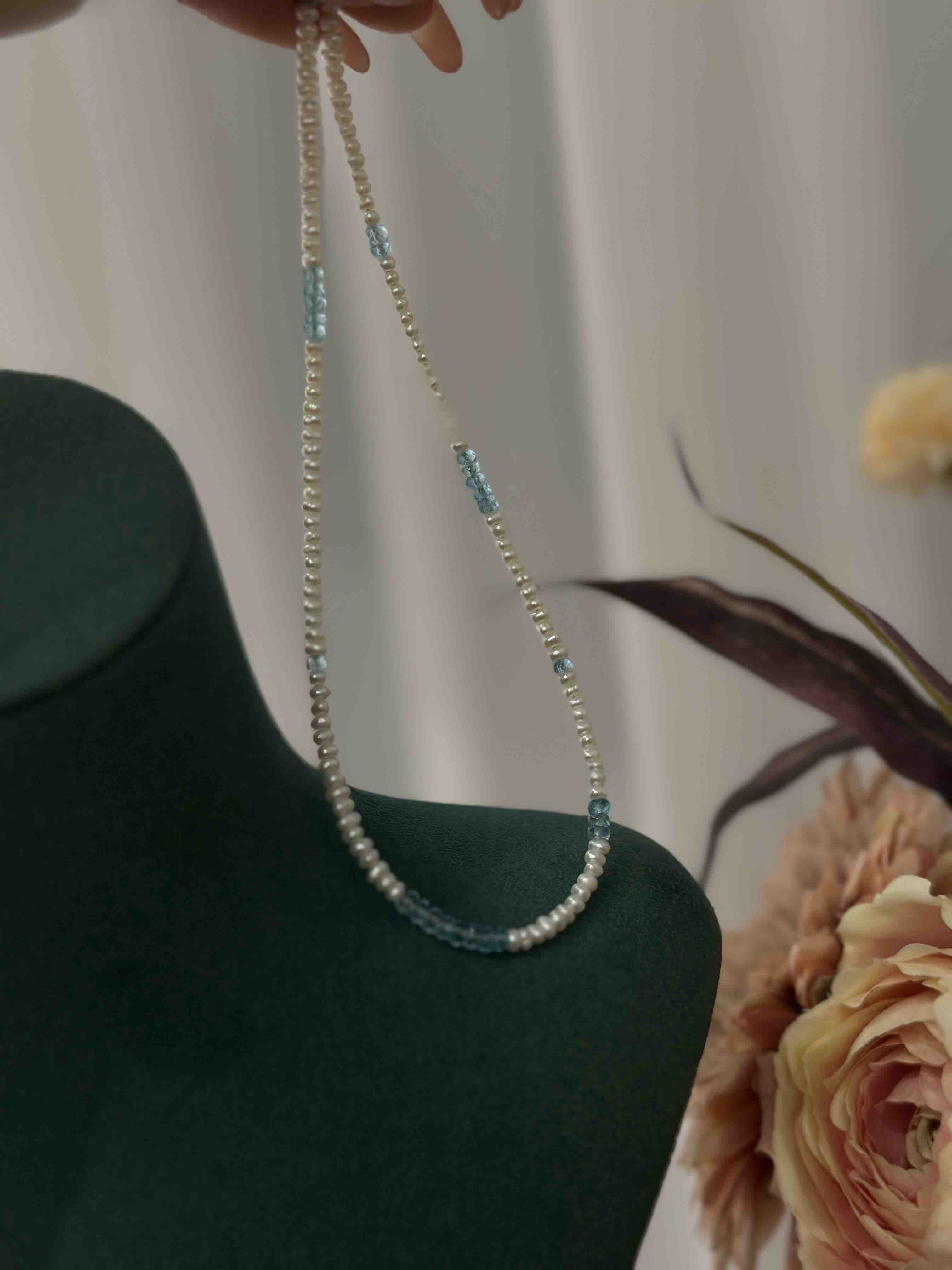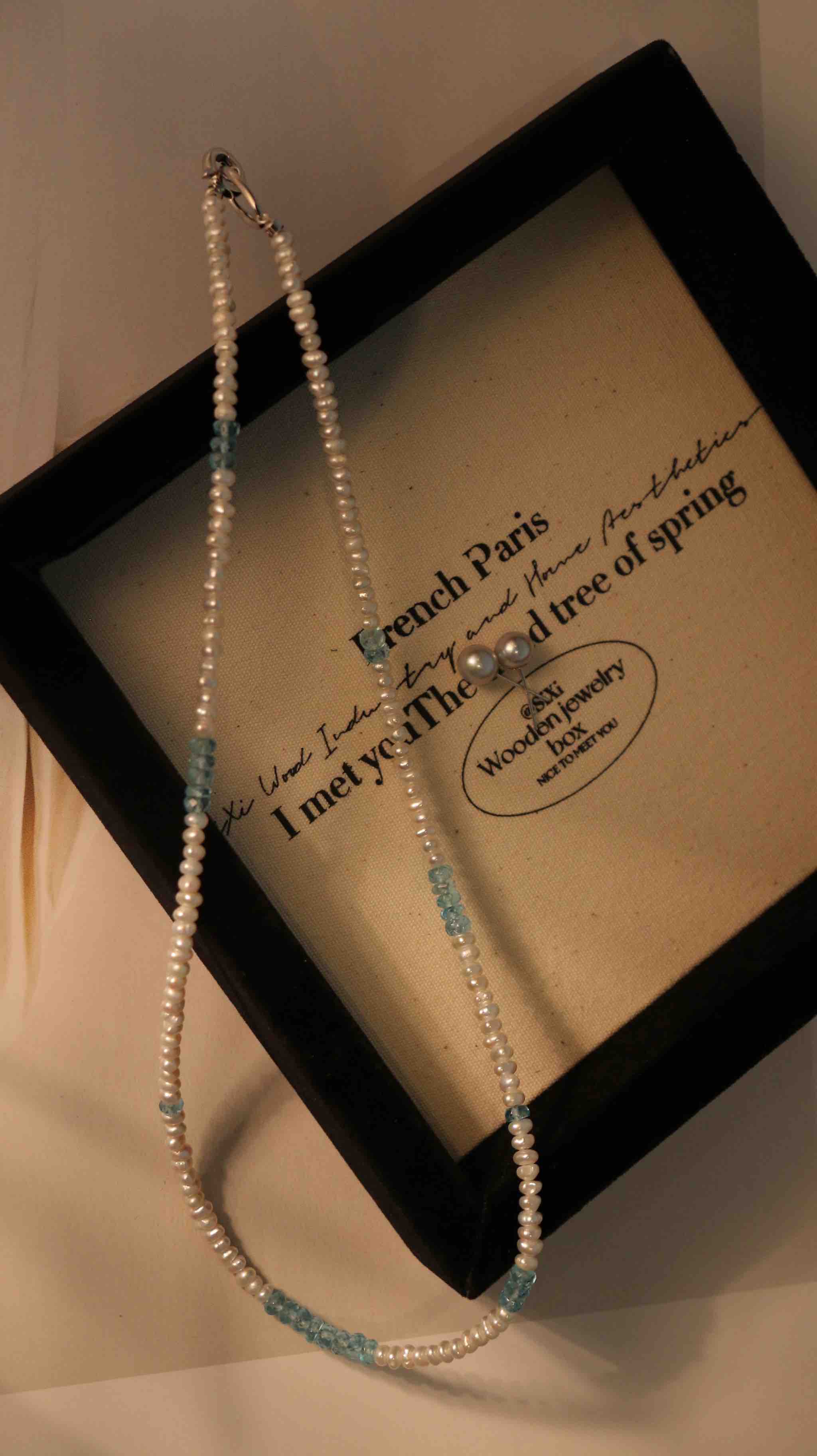 【喜欢特别风格的姐妹,约】帕拉伊巴色系磷灰石小石头,配了很特别形状的小石头无核天然珍珠项链,好看的很。4-5mm左右。