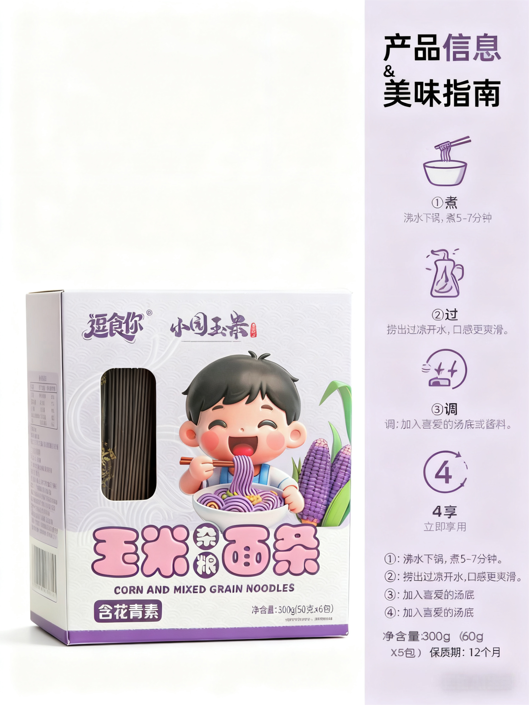 儿童玉米杂粮面条50克*6袋/盒