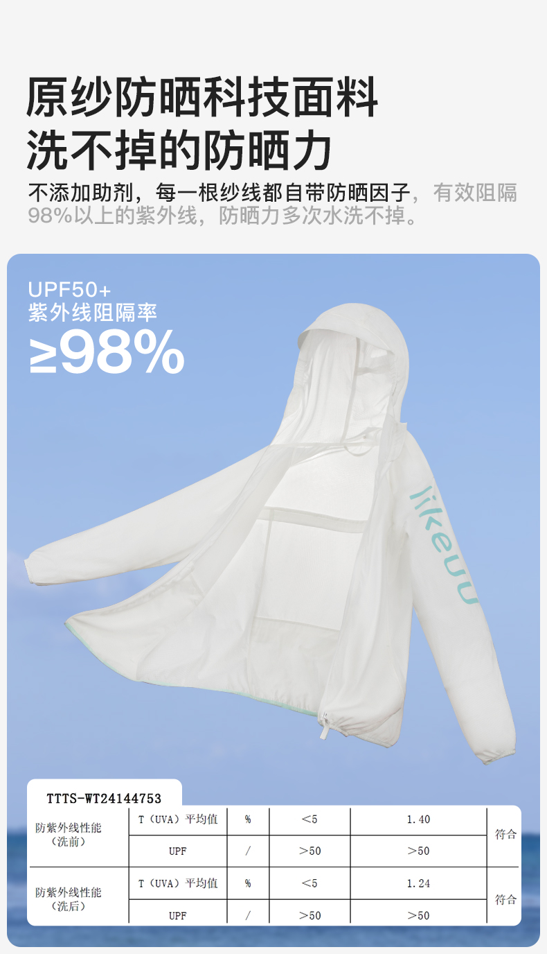 ubras旗下likeuu小冰块防晒衣儿童凉感男女童透气防晒服夏季UPF50 ZY