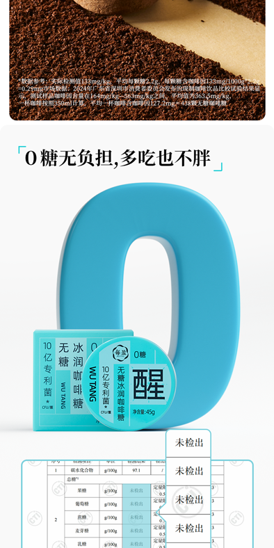每盈 益生菌无糖冰润咖啡糖45g/盒 一盒20颗 薄荷味