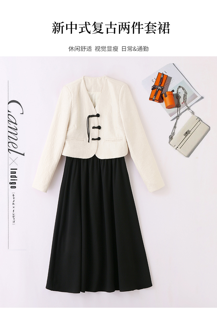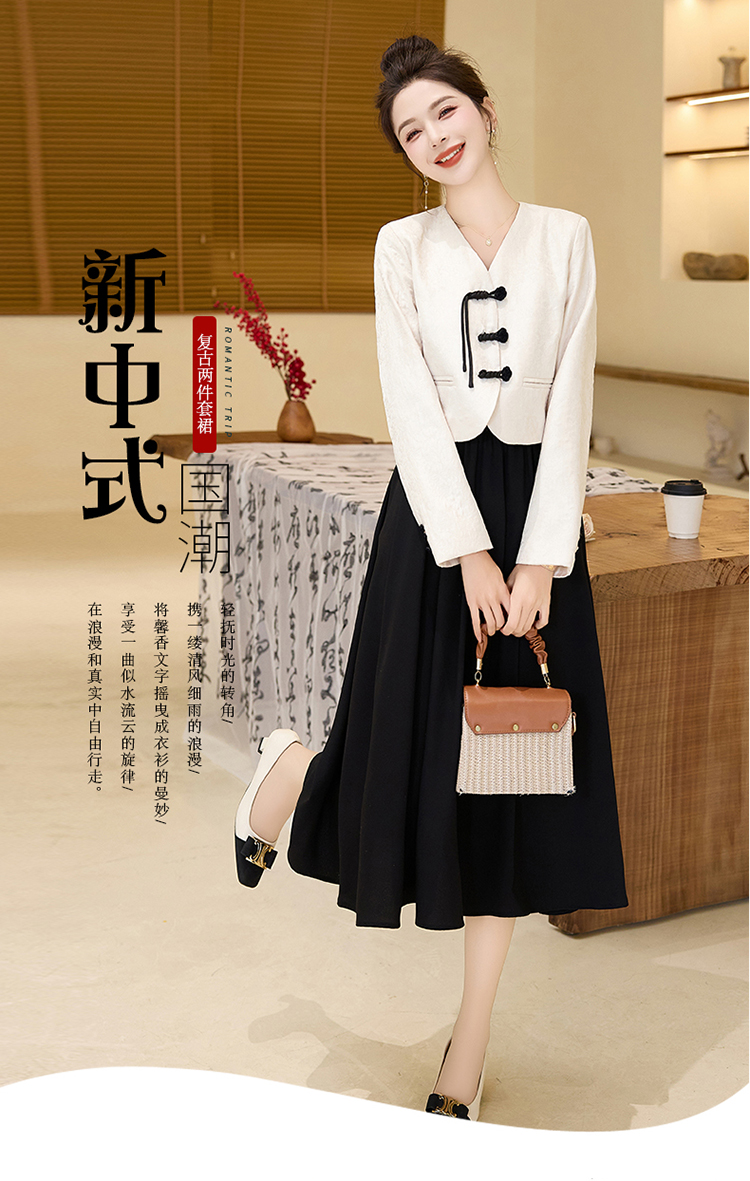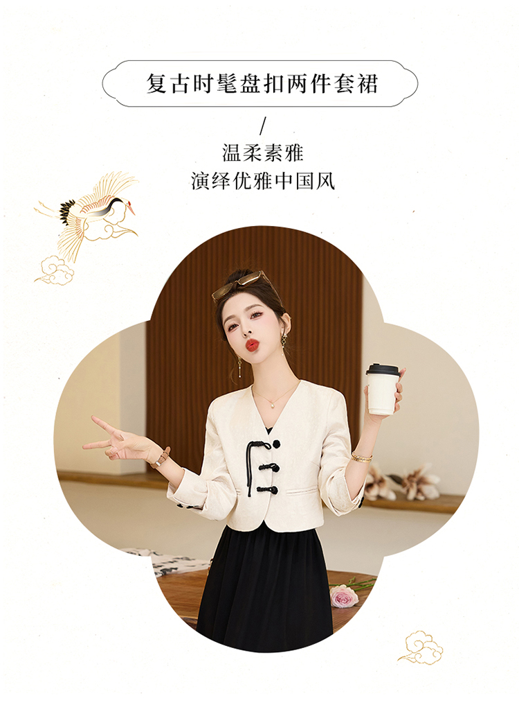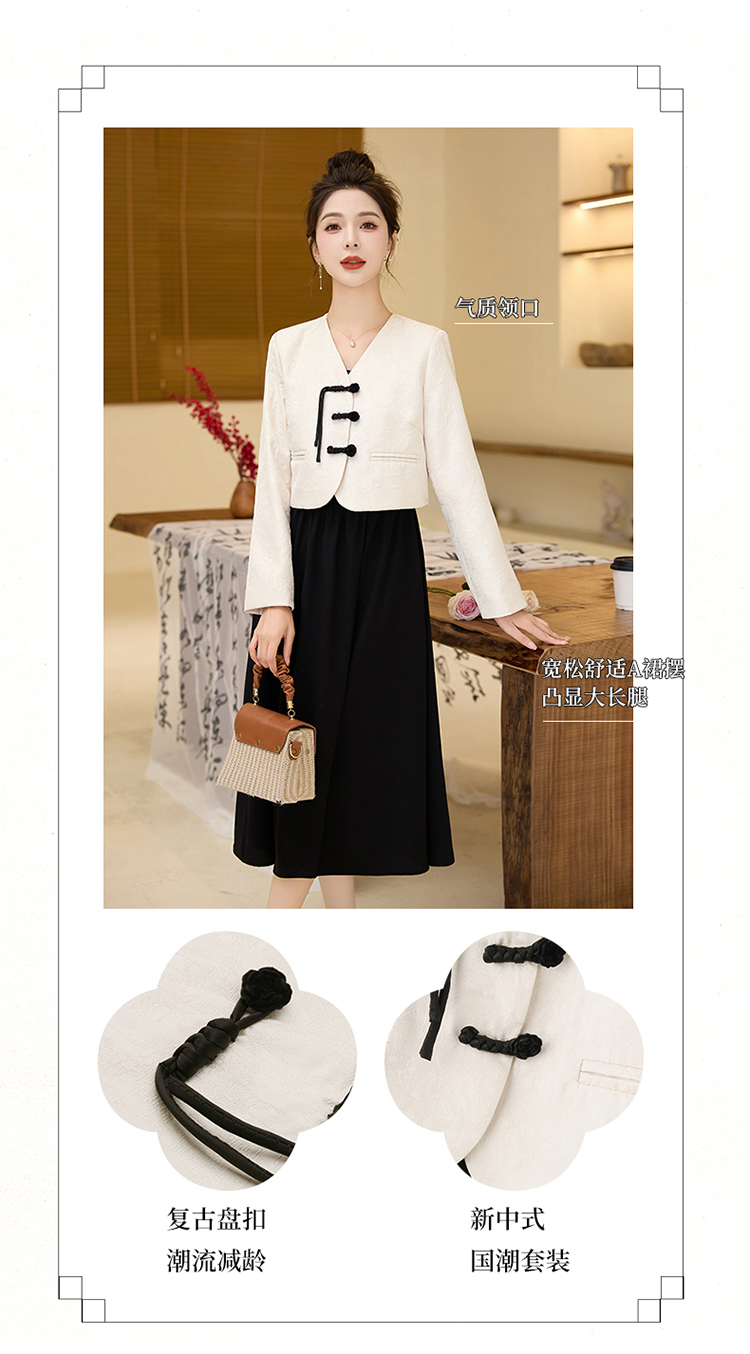 春装新款,时尚潮流简约气质两件套中式盘扣高级感套装套裙HR-HRYZ9619