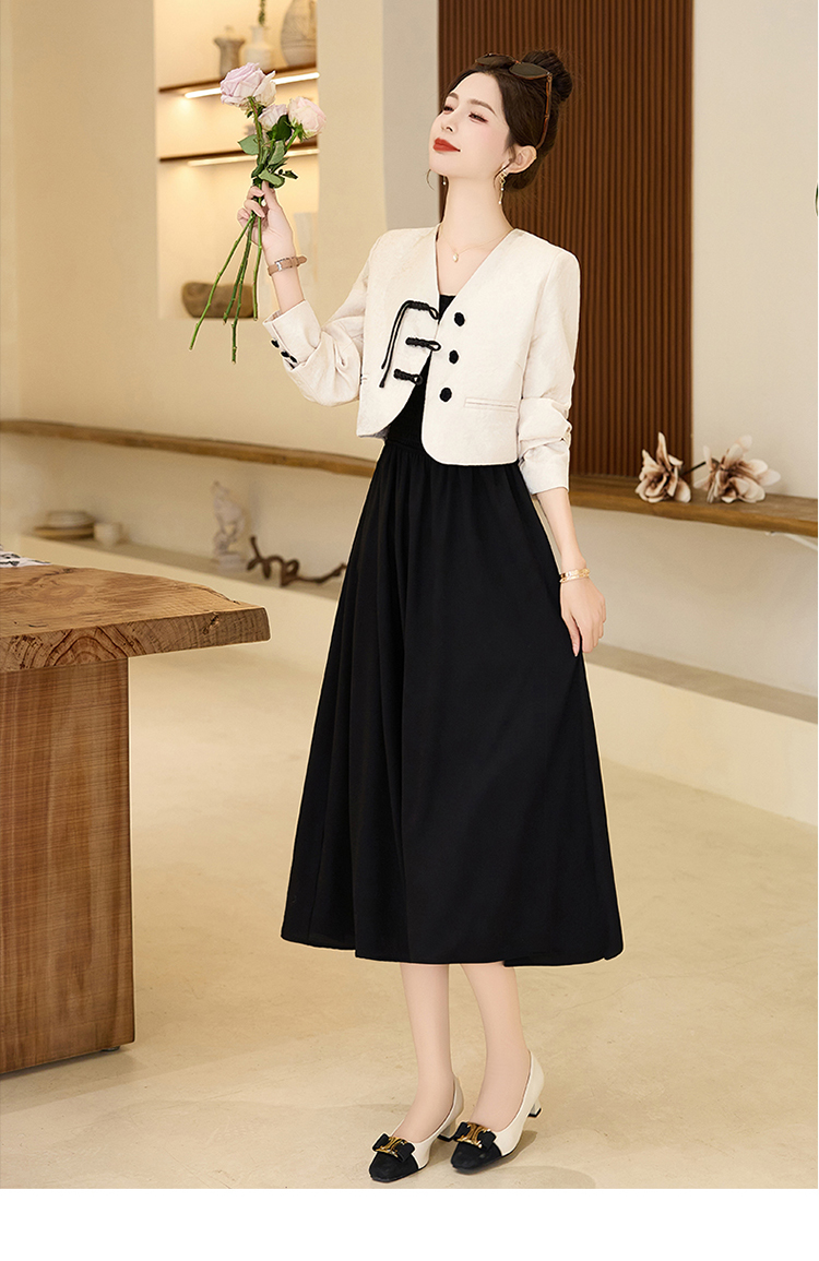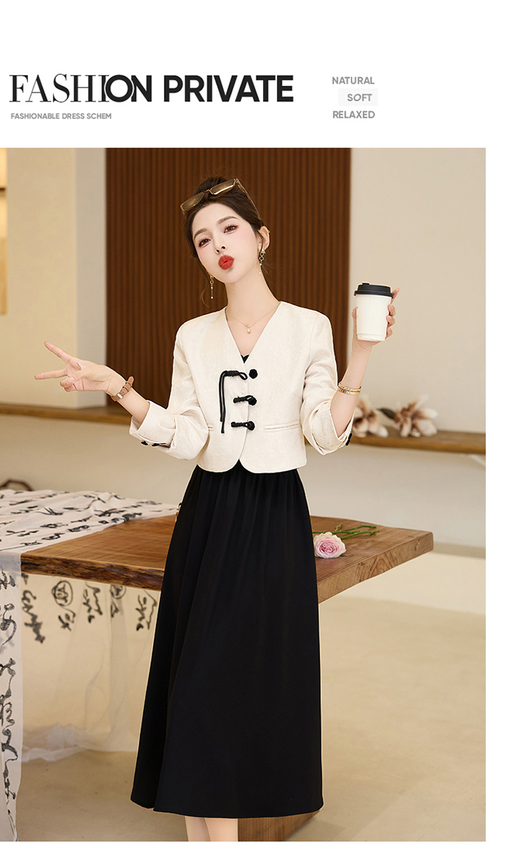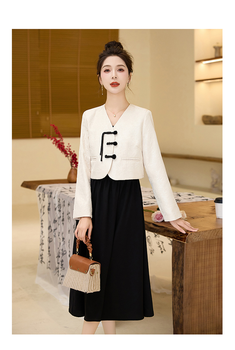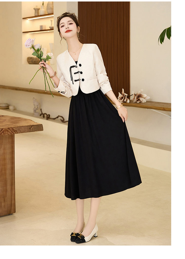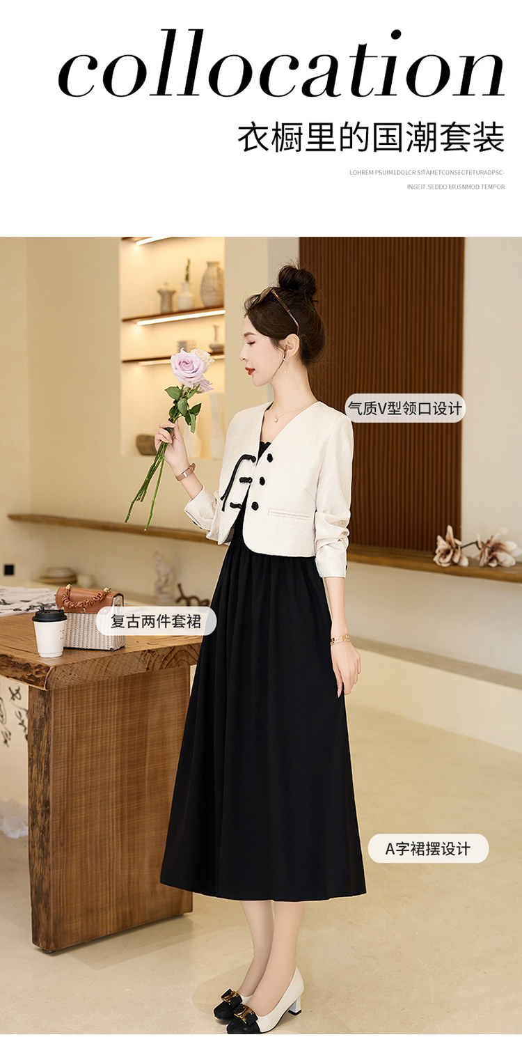 春装新款,时尚潮流简约气质两件套中式盘扣高级感套装套裙HR-HRYZ9619