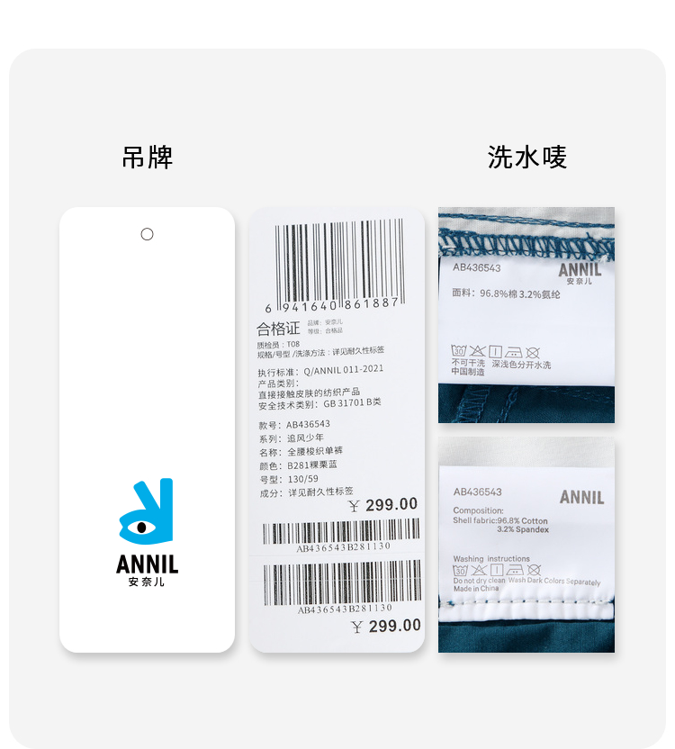 男童轻运动风伞兵裤单裤新款安奈儿童装实体店同款AB436543