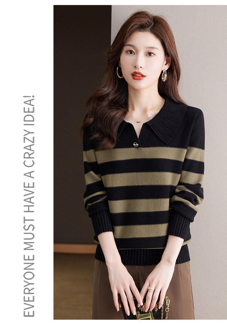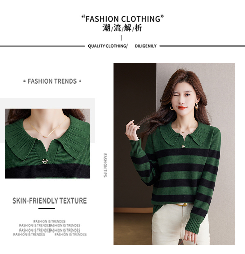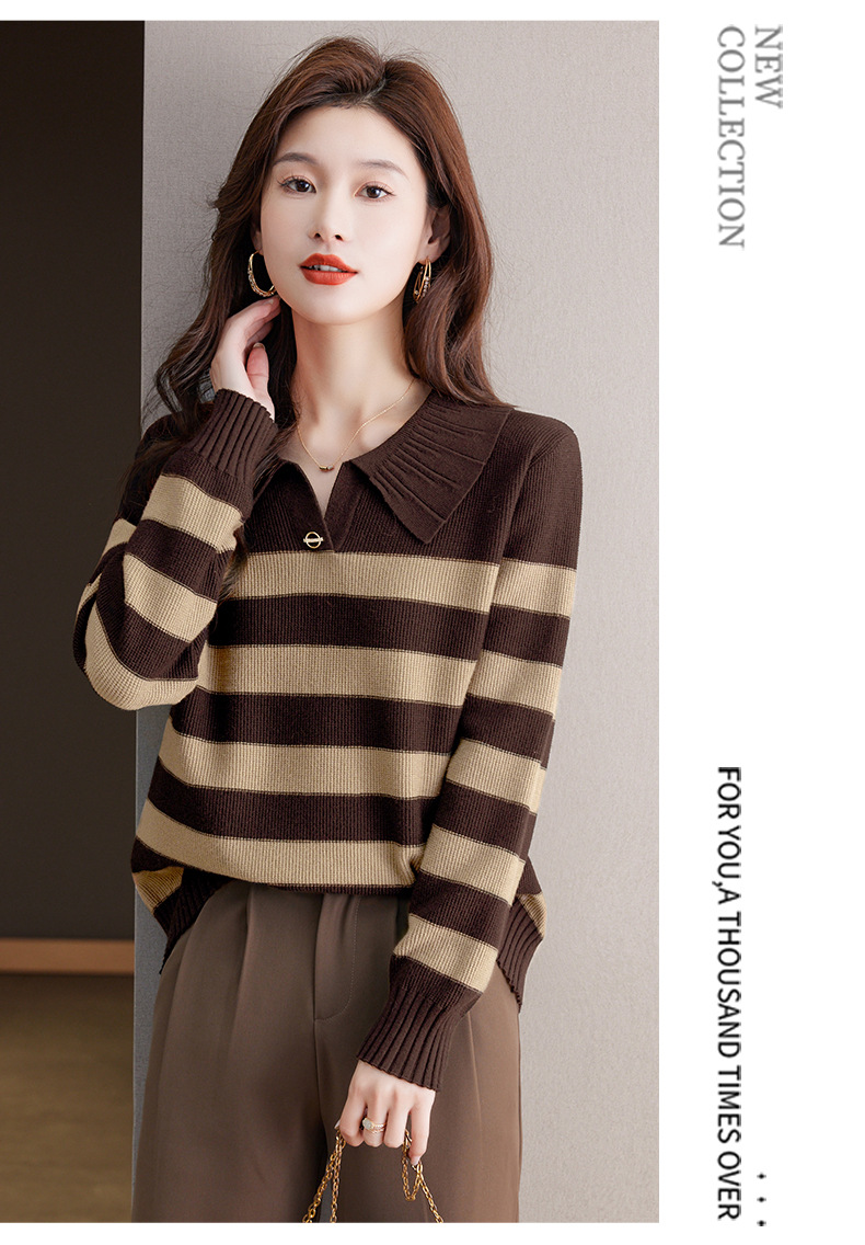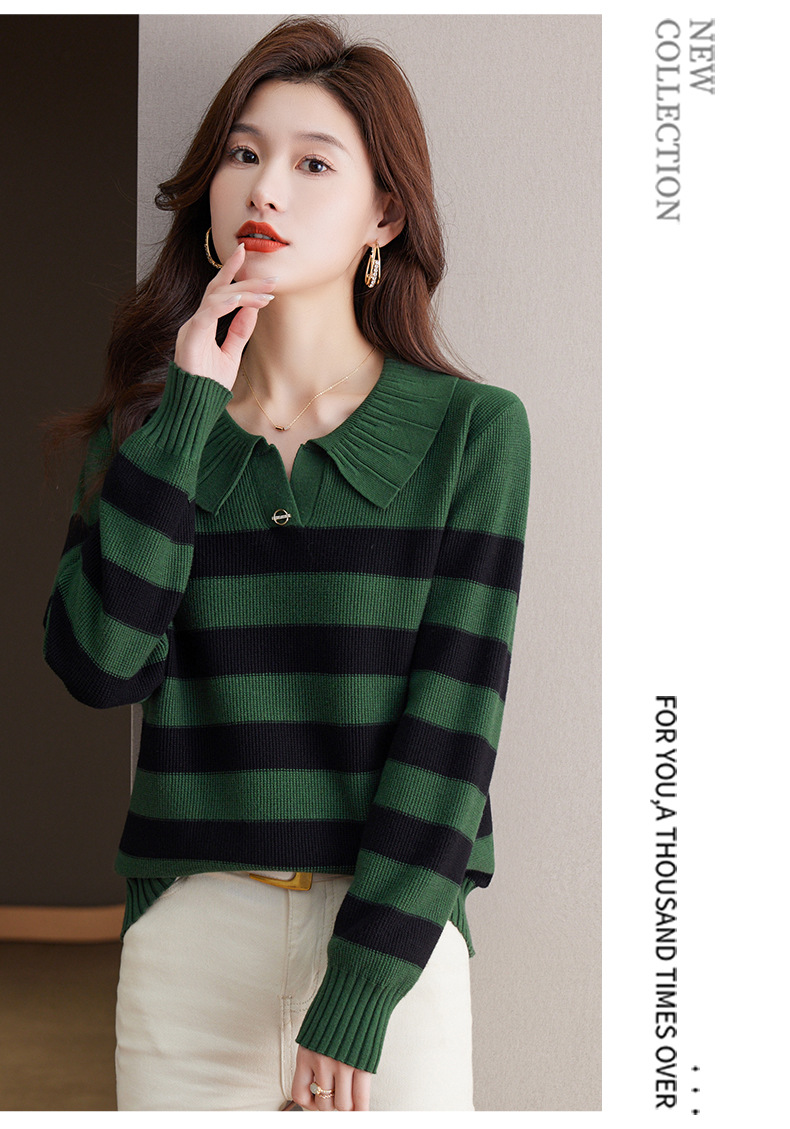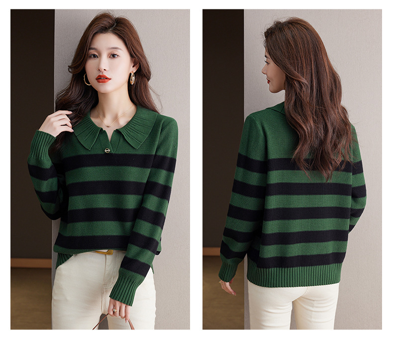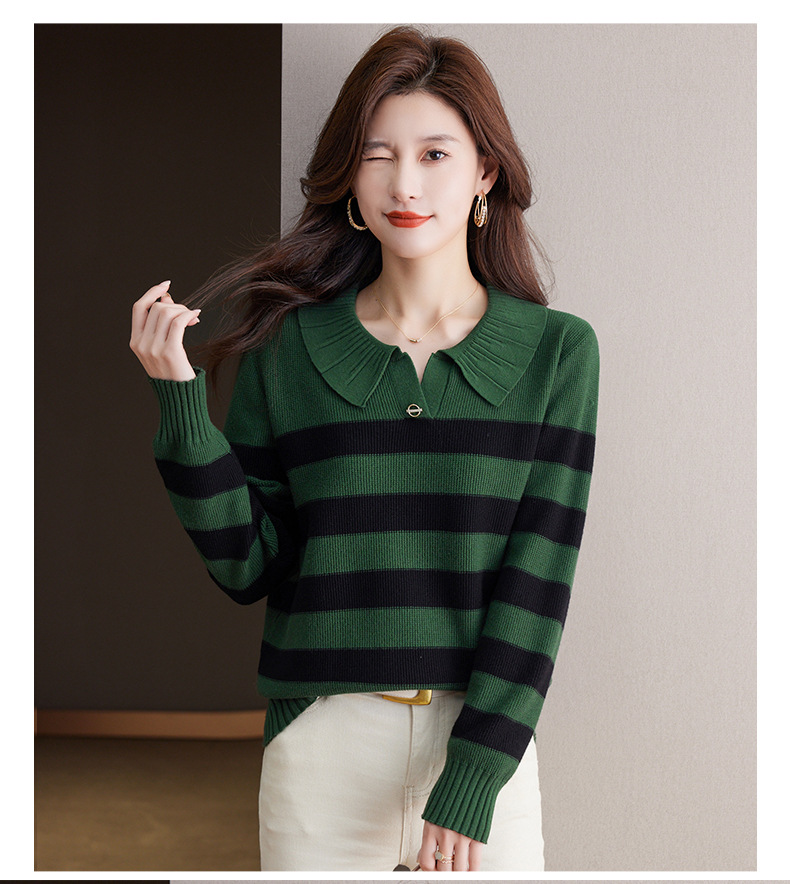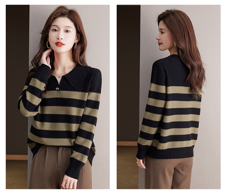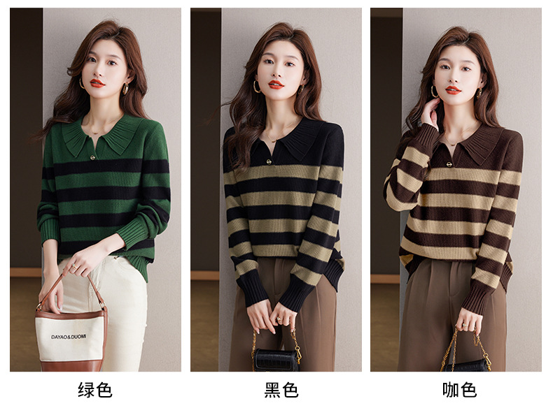 时尚洋气娃娃领,针织衫长袖条纹毛衣CC-27-2350