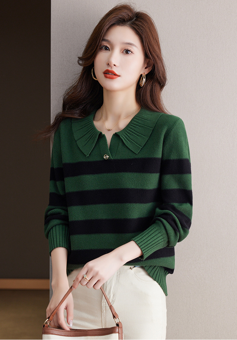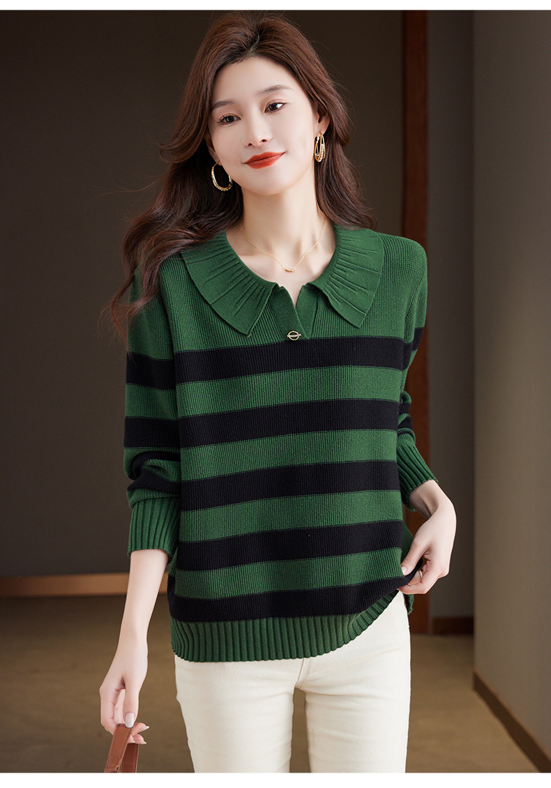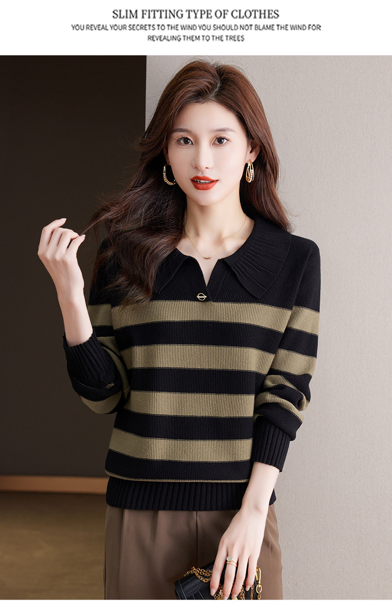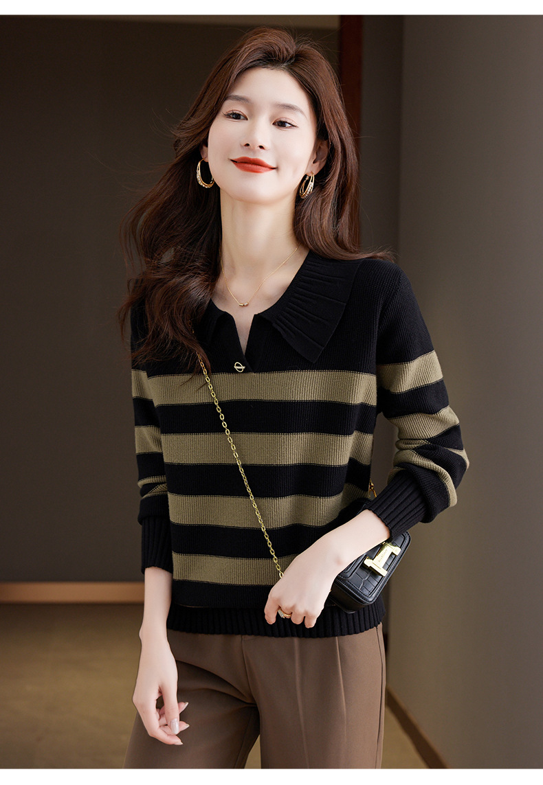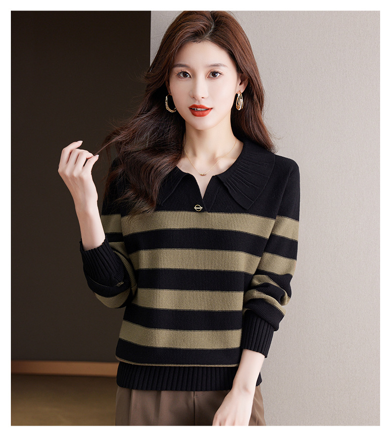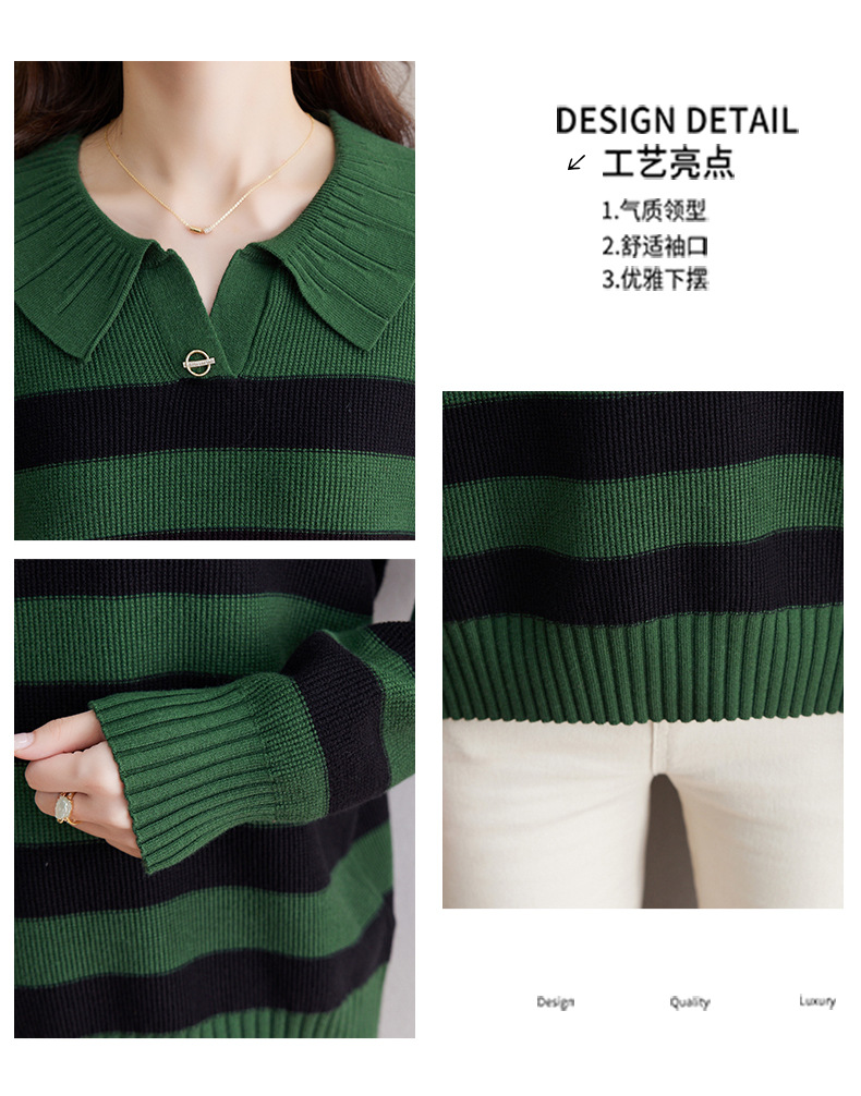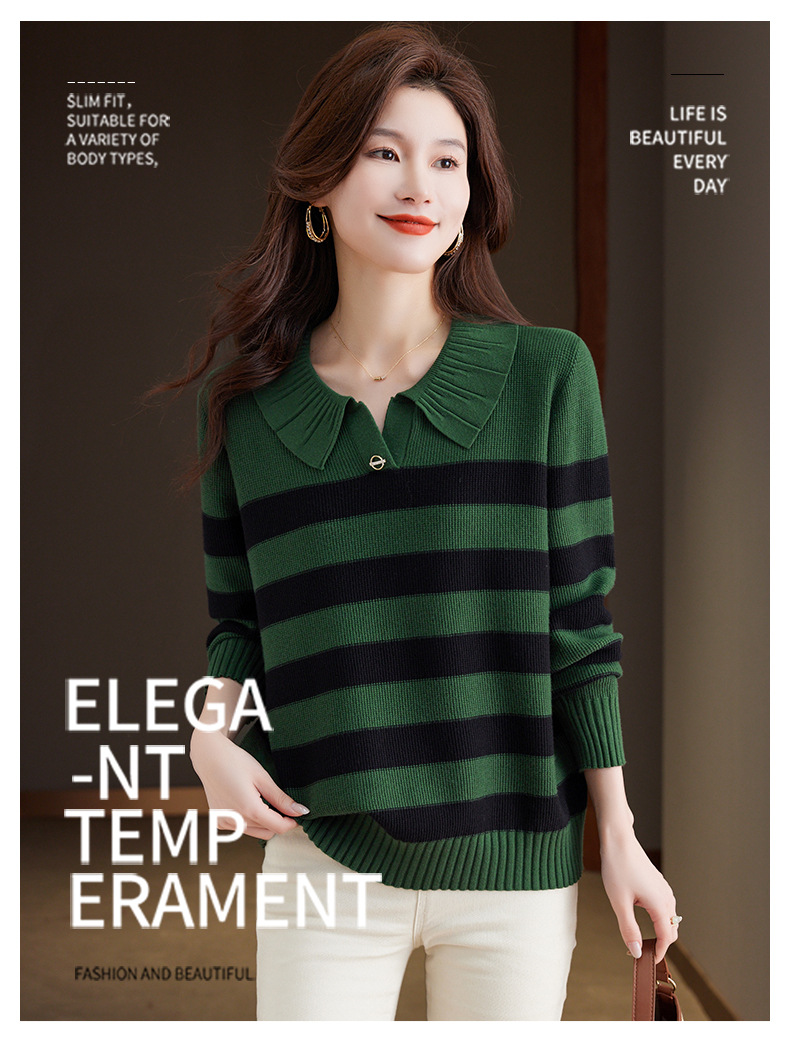 时尚洋气娃娃领,针织衫长袖条纹毛衣CC-27-2350