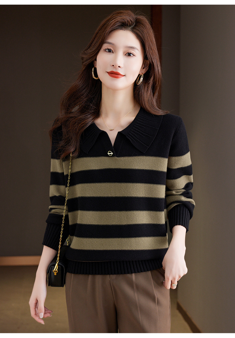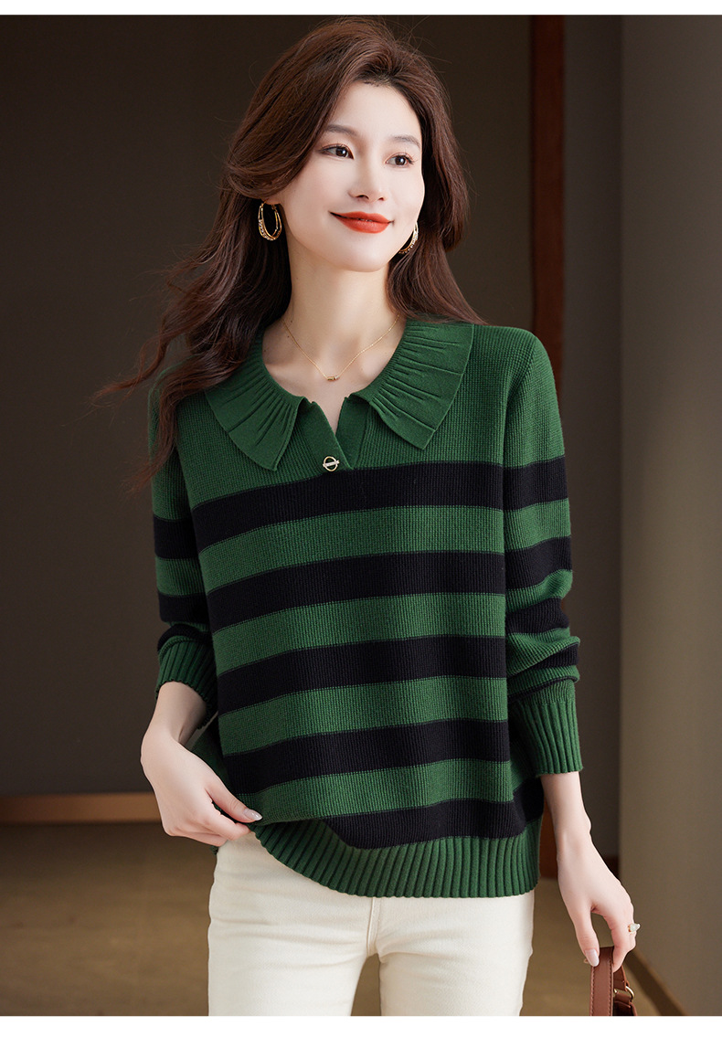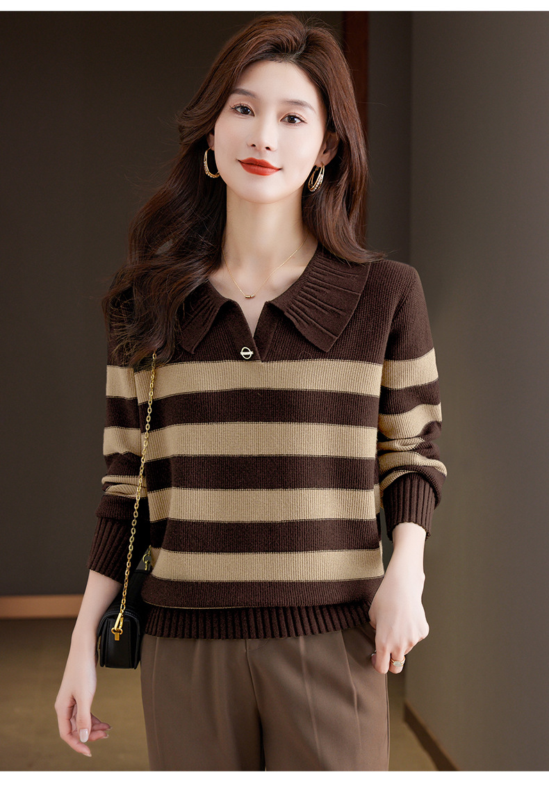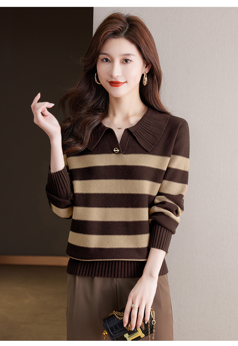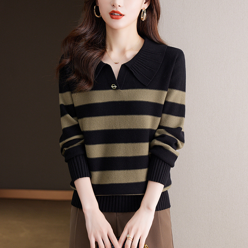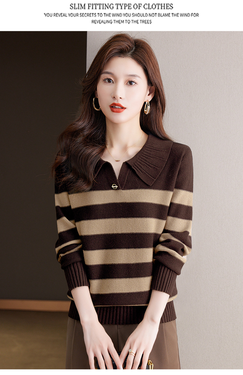 时尚洋气娃娃领,针织衫长袖条纹毛衣CC-27-2350