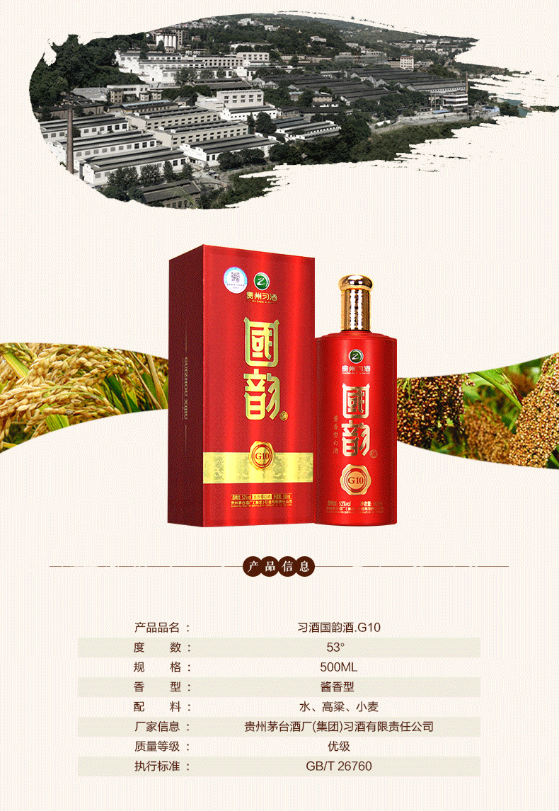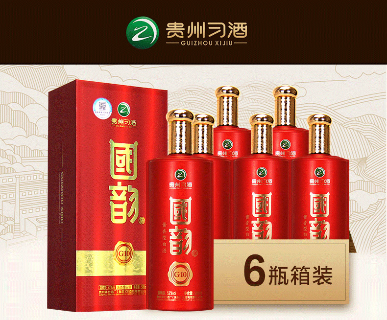 【推荐】贵州茅台习酒集团 习酒国韵G10 53度酱香型白酒 500ML礼盒装喜酒婚宴用酒 整箱6瓶装