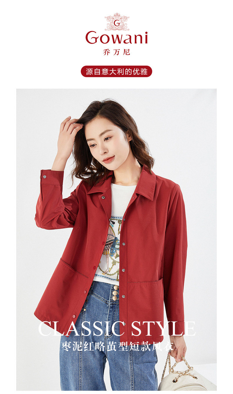 乔万尼短款廓形利落长袖松弛感风衣外套EI3B162