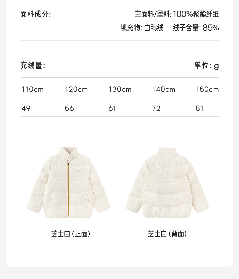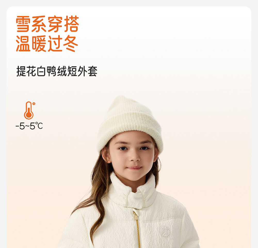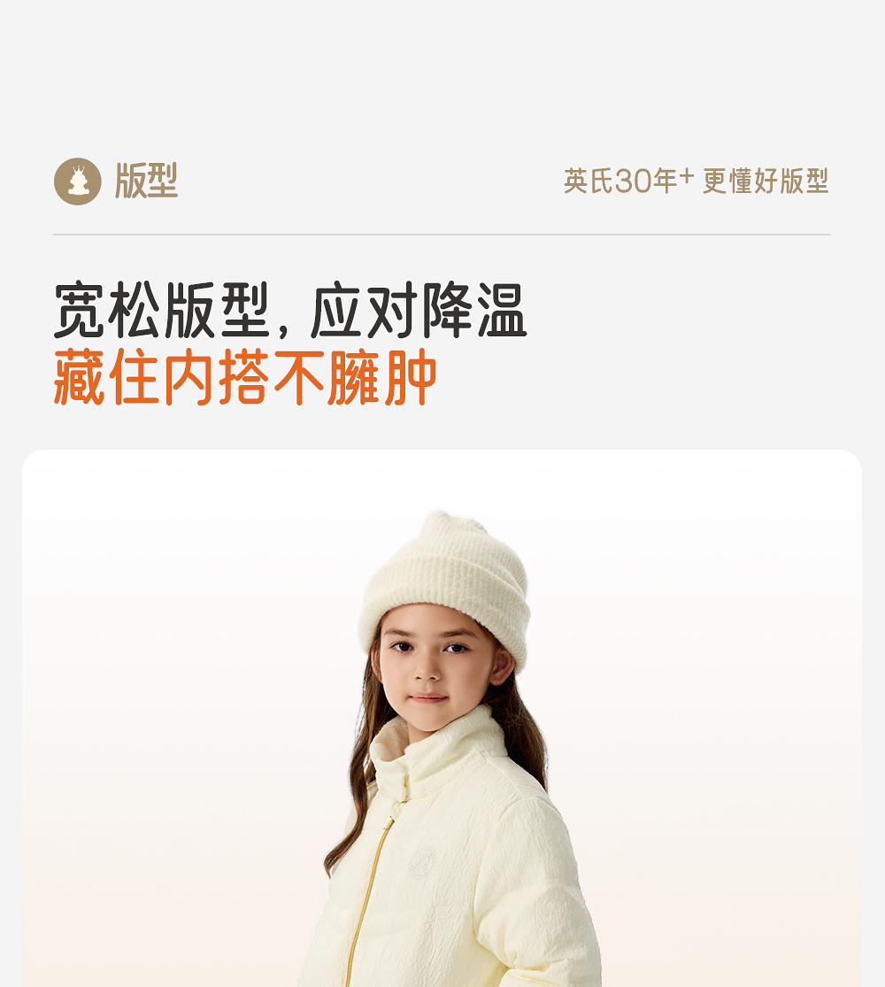 【商场同款】英氏女童羽绒服奶油白秋冬温暖防风简约百搭儿童新款超韧绒