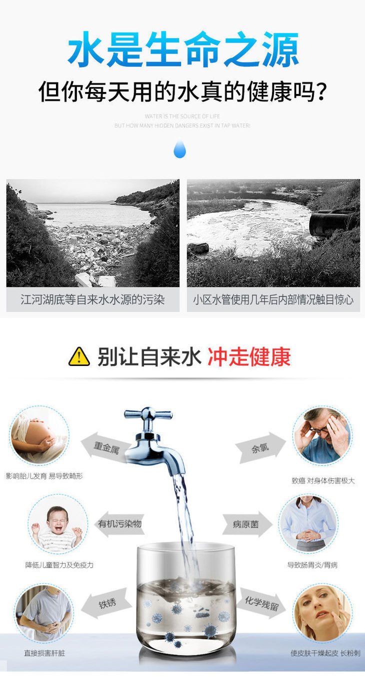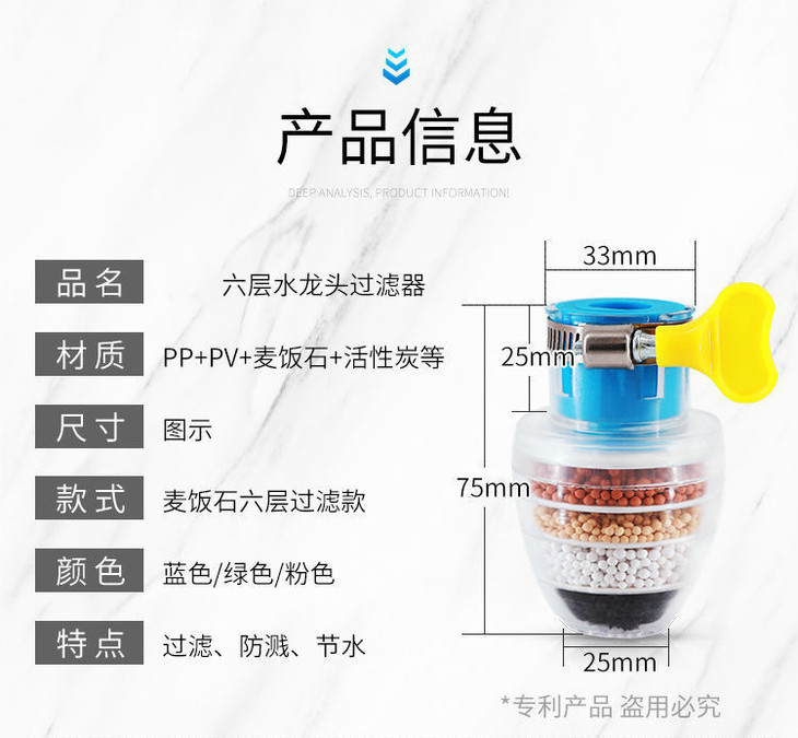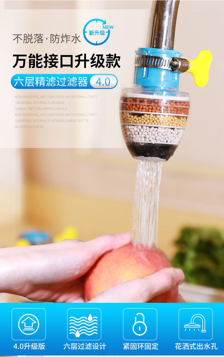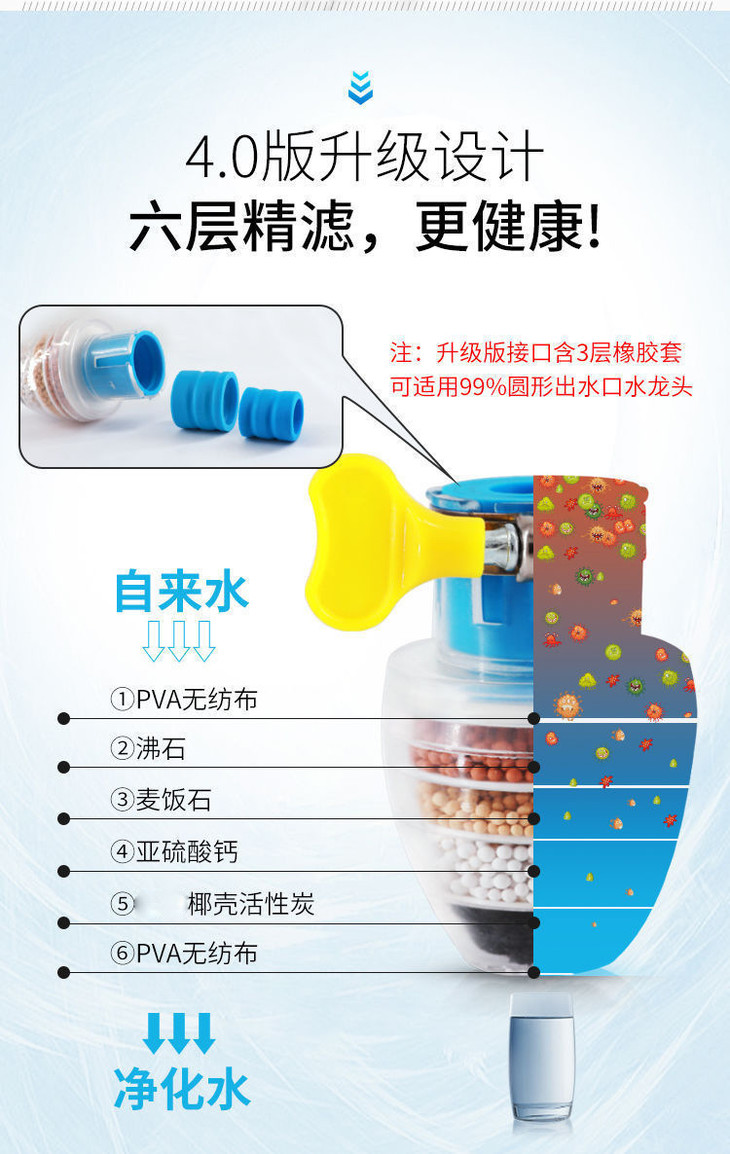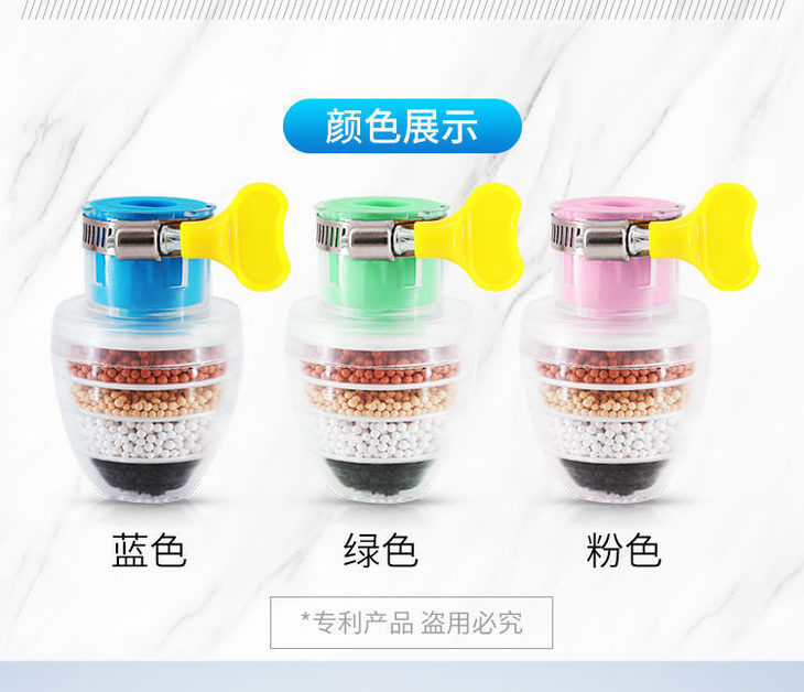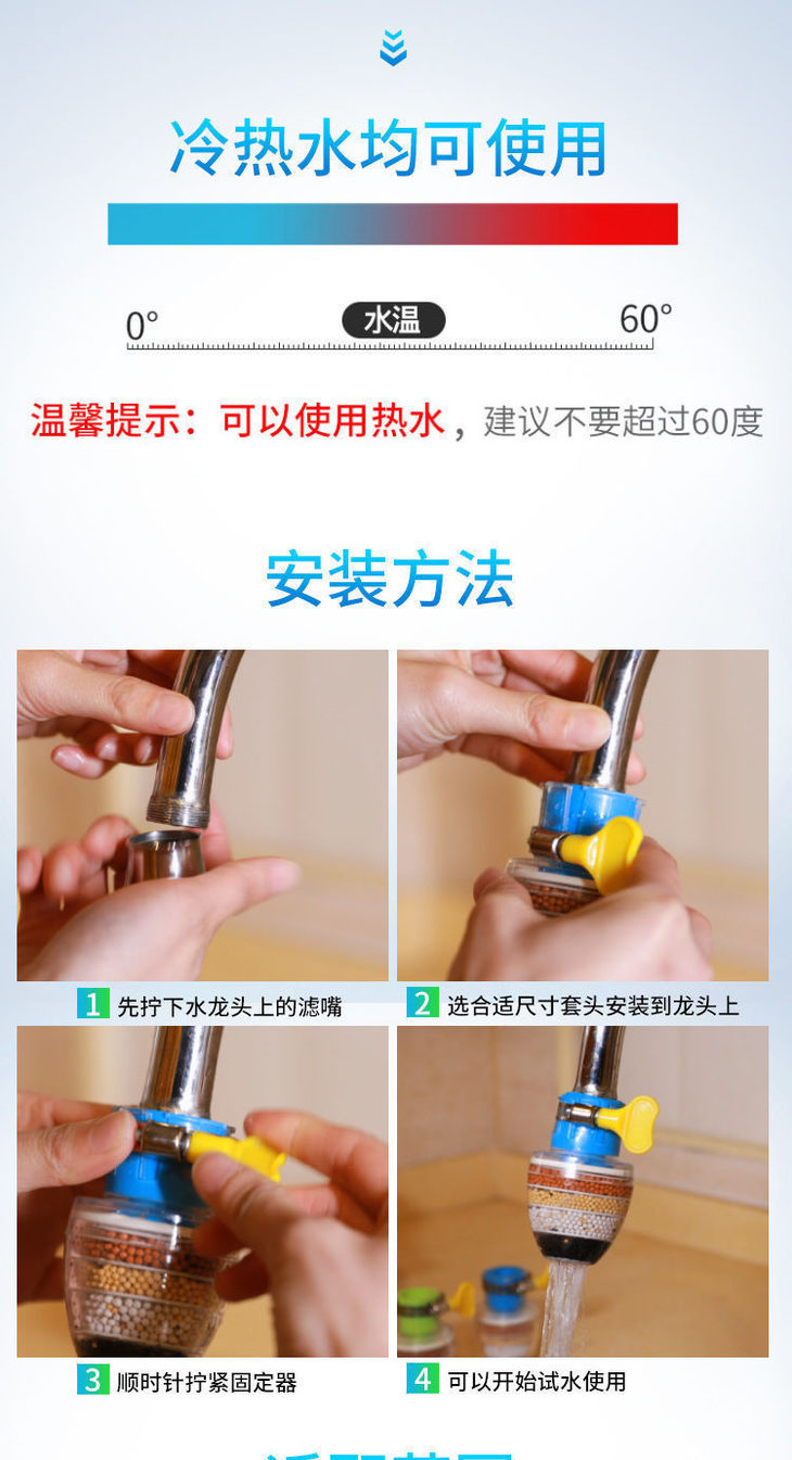 【3只装-第五代】-厨房浴室家用小型自来水水龙头活性炭过滤器净水器-5秒安装麻雀家居