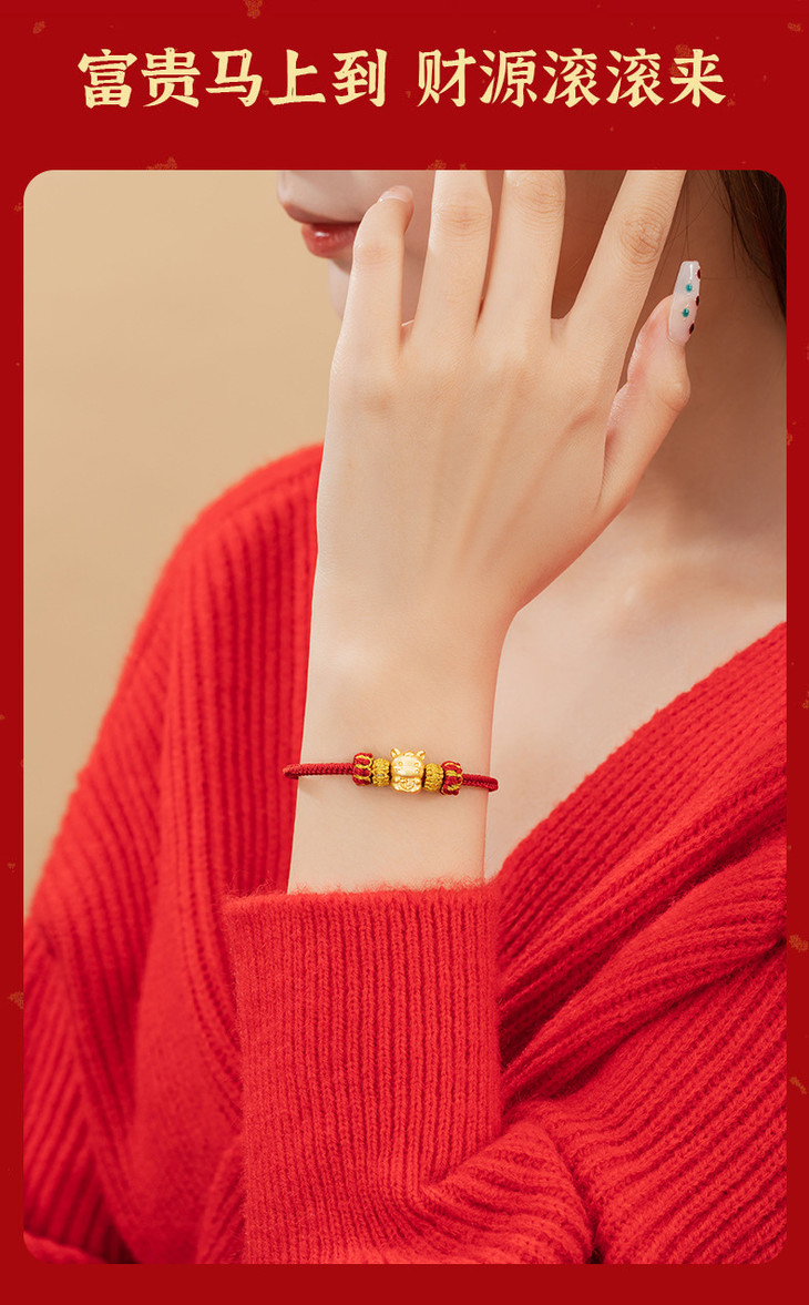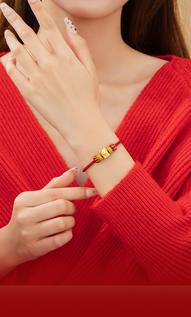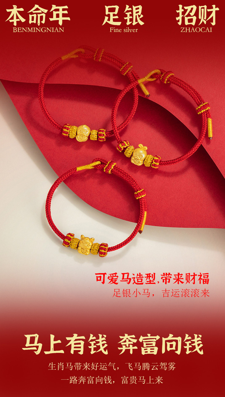 十二生肖足银999编织红色手绳轻奢高级感本命年手饰ins风马年手链S0175