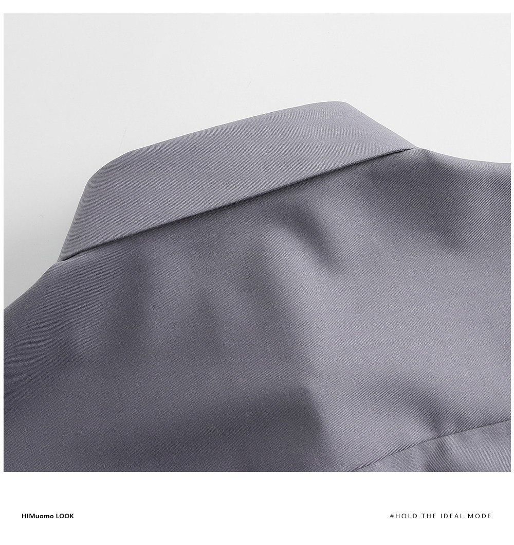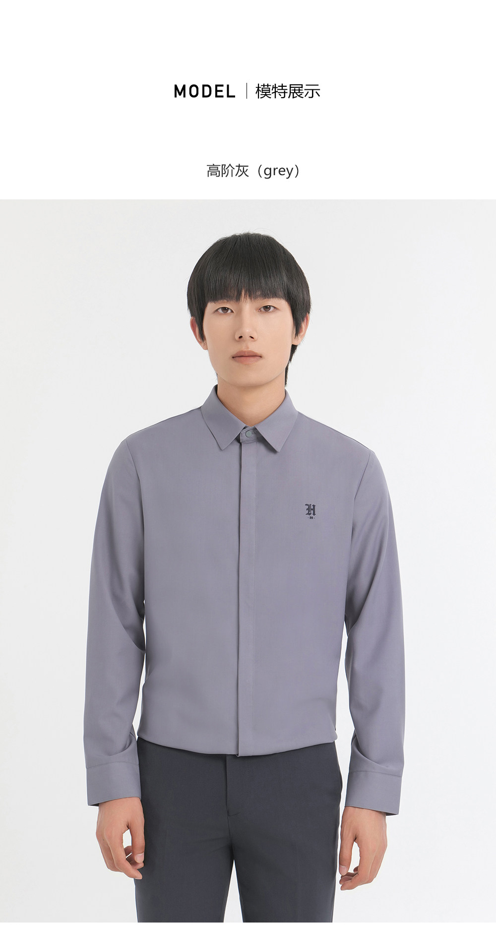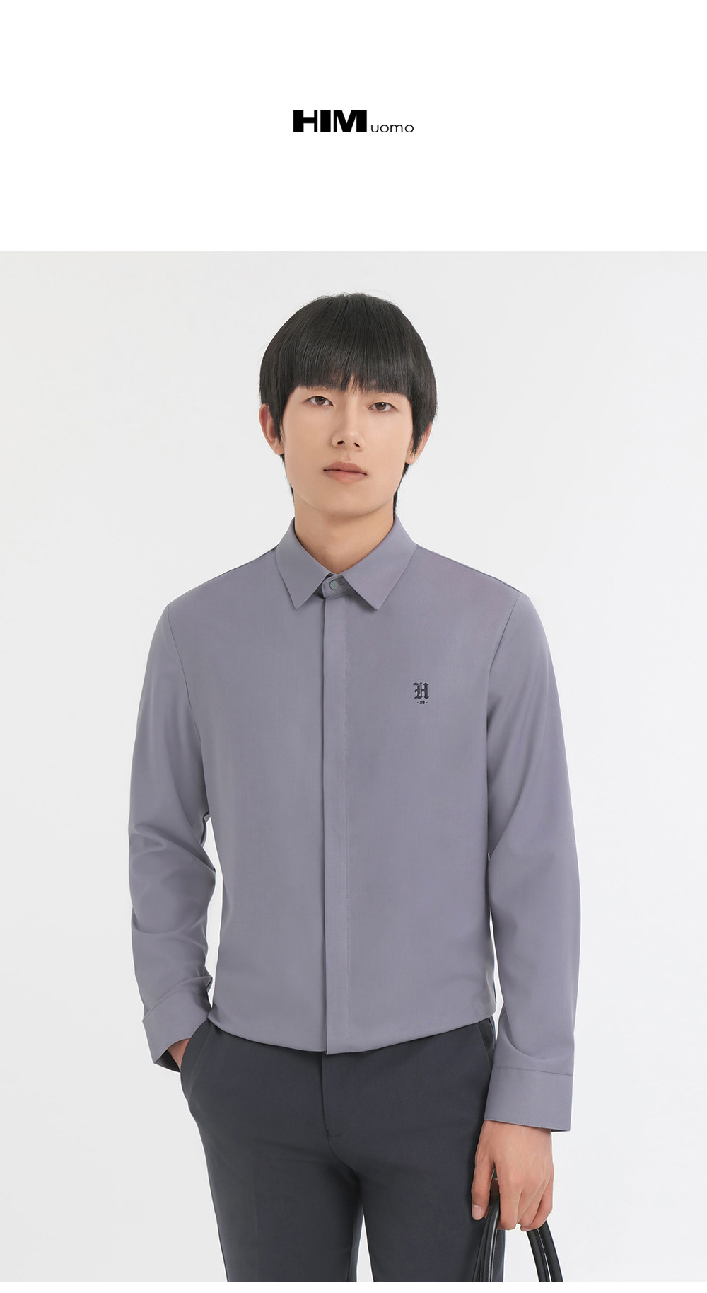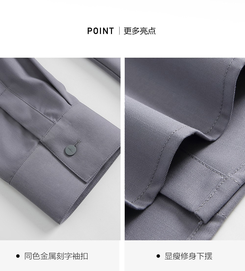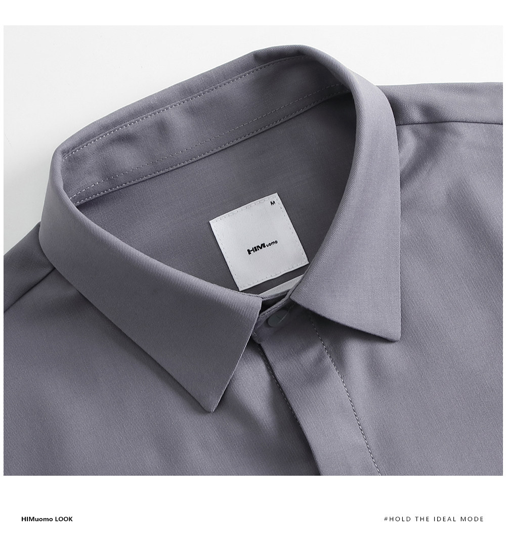 HIM漢崇 舒适修身优雅灰色衬衣通勤上班商务正装衬衫男 2025秋季