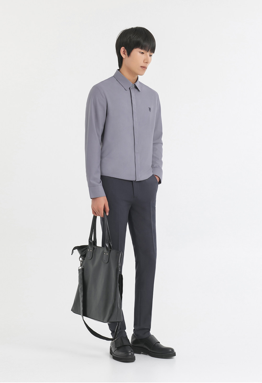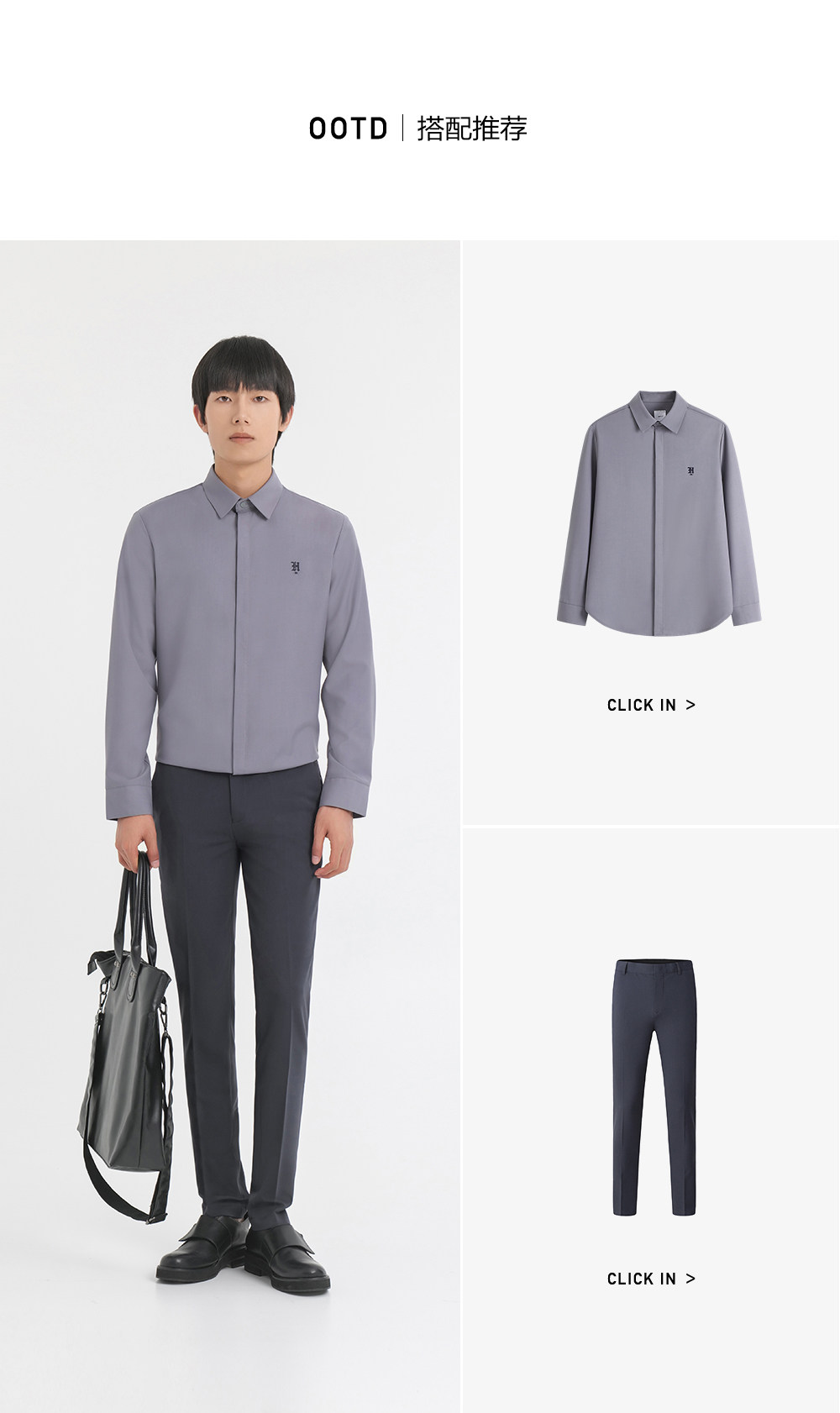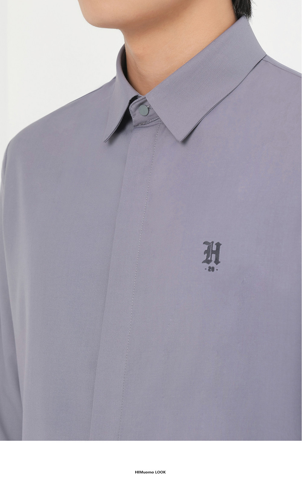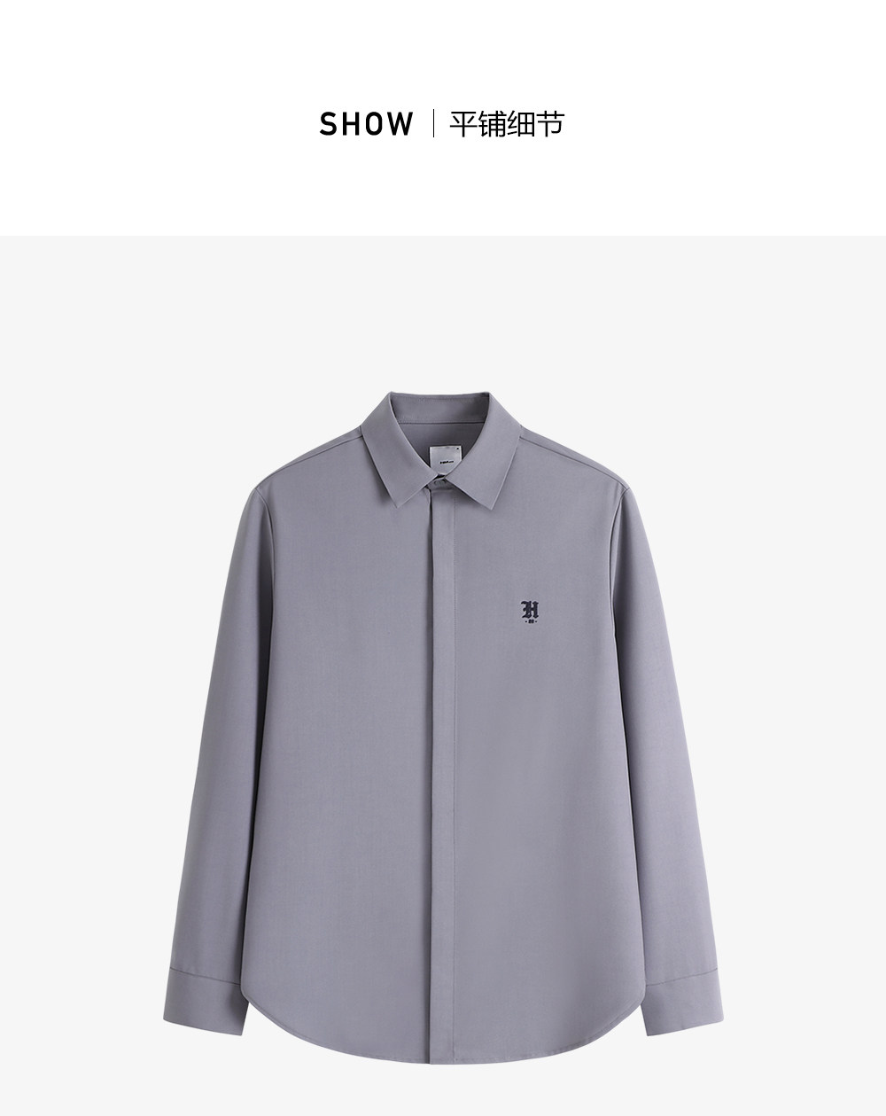 HIM漢崇 舒适修身优雅灰色衬衣通勤上班商务正装衬衫男 2025秋季