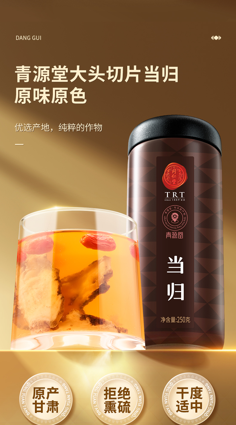 【正宗同仁堂品牌】北京同仁堂 青源堂 当归片250克 甘肃岷县 拒绝熏硫 自然风干 可泡可炖SY