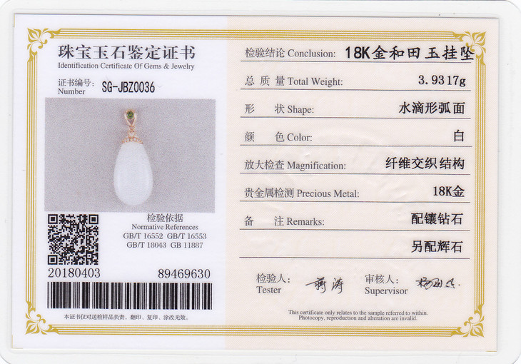 18K玫瑰金和田玉(白玉)镶钻水滴吊坠