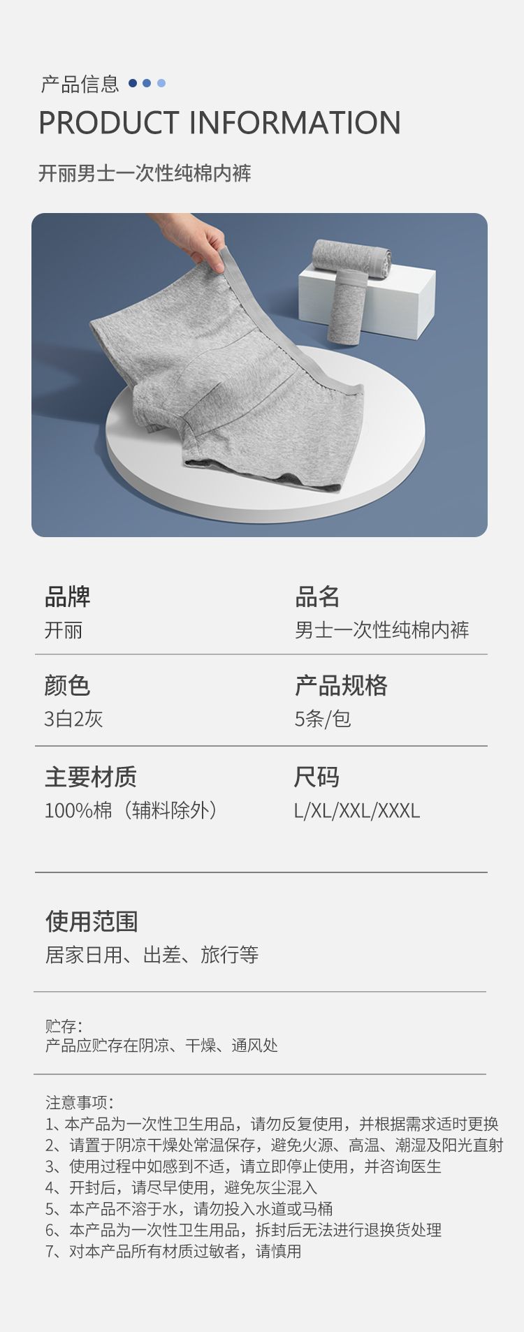 【清仓特惠】10条L码 | 男性平角裤一次性纯棉内裤100%棉