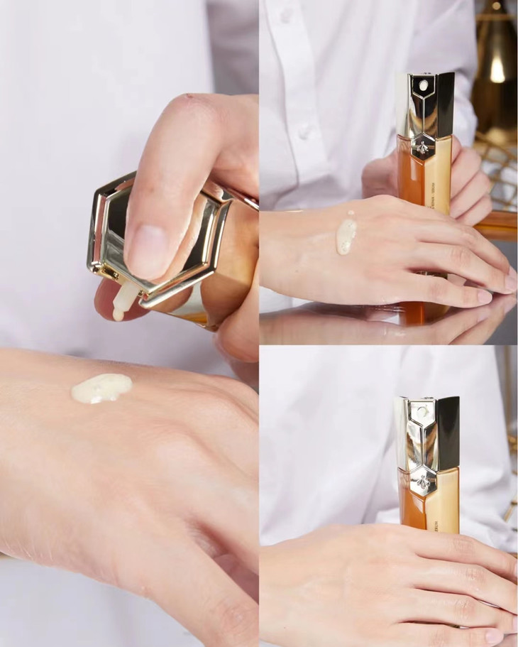 娇兰帝皇蜂四件套 👍 蜂蜜🍯拥有令皮肤学界拍手称奇👏🏻的愈合能力🛡️;法国娇兰从全球甄选出具有颠覆修护效果的乌埃尚岛黑蜂蜂蜜🍯和上等👏🏻的浓萃蜂皇浆🍯。作为帝皇蜂姿紧致修护系列的☑️主打配方;🙌🏻修护皮肤、紧实弹润👌🏻、细致平滑🥛、令肌肤绽放蜜润💧光彩🌈。 【套装包括】:复原蜜50ml+双管50ml+眼精华20ml+眼霜15ml