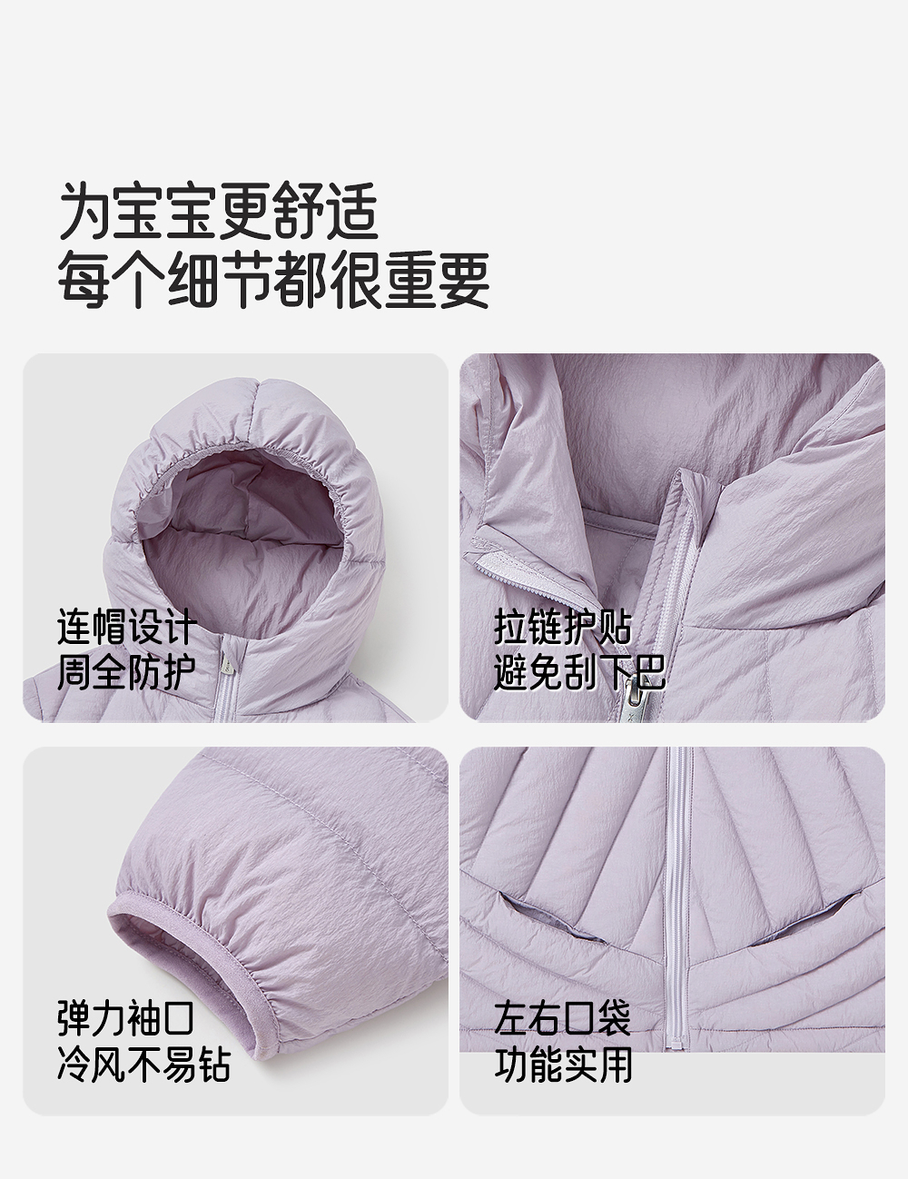 【商场同款】英氏儿童连帽羽绒服白鸭绒保暖外套秋冬女宝宝新款超韧绒