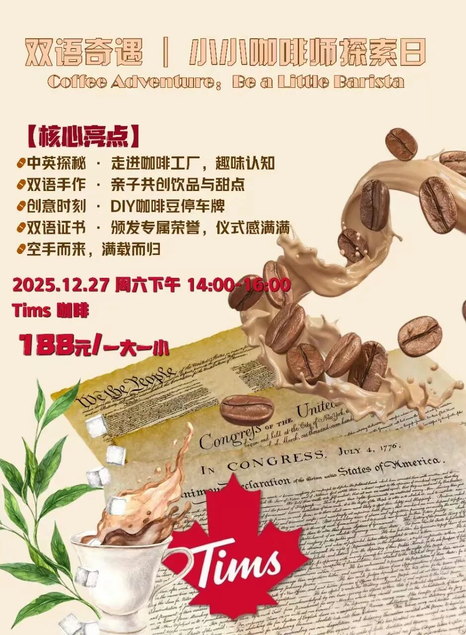 大连暖冬亲子局必冲<小小咖啡师探索日>!咖啡闯关+饮品DIY+甜品品鉴等,还有咖啡豆停车牌专属定制!给娃满满的仪式感,快乐不重样!
