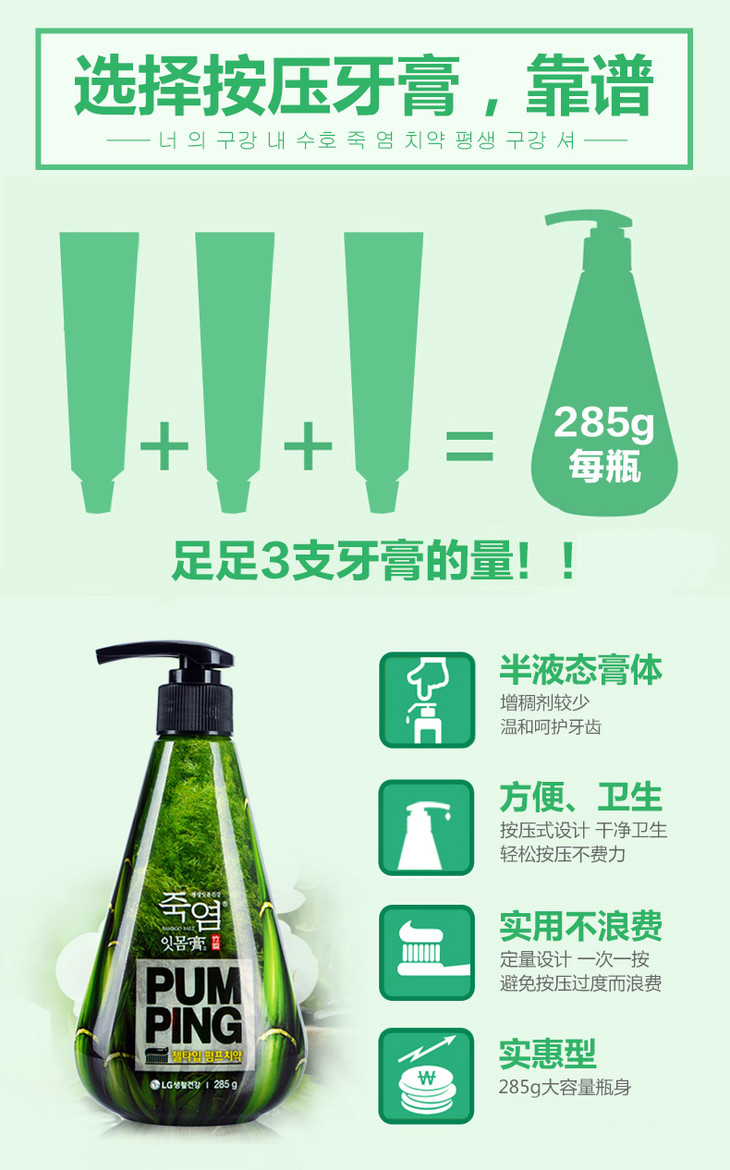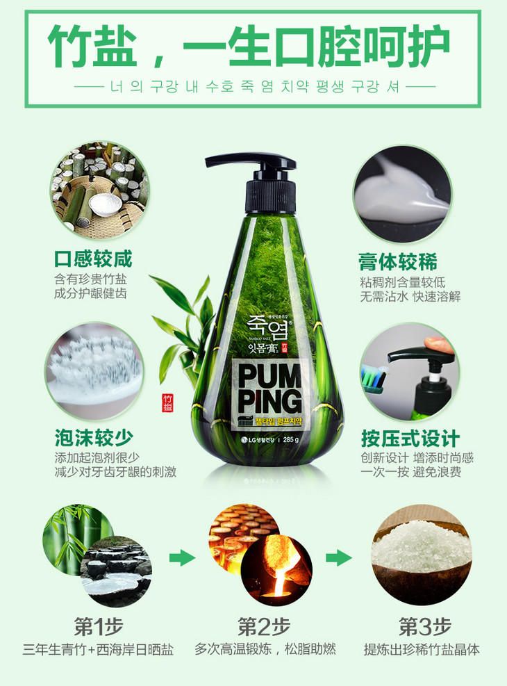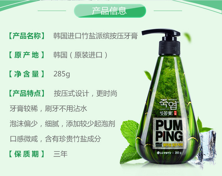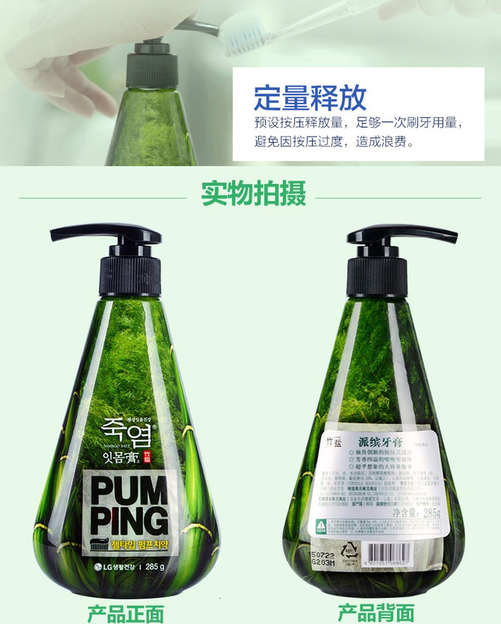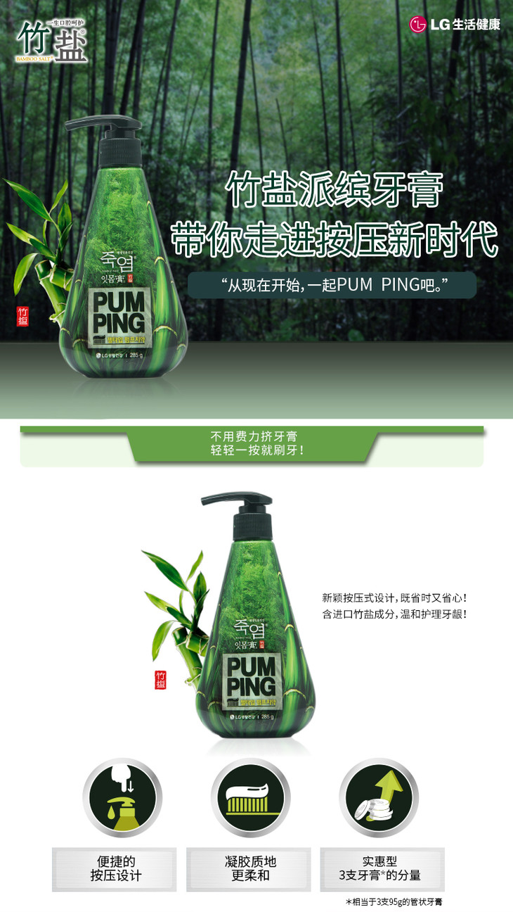 倍瑞傲竹盐派缤牙膏285g