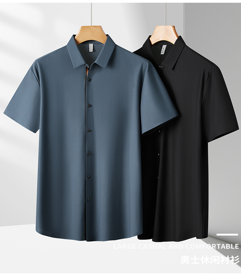【冰丝】【DDP】大依优型大码短袖衬衫夏装冰丝凉感半袖衬衣胖子时尚休闲色百搭免烫上衣胖子男士