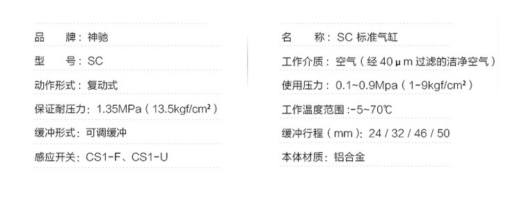SNS神驰 气动执行元件 SC标准气缸 亚德客型气缸