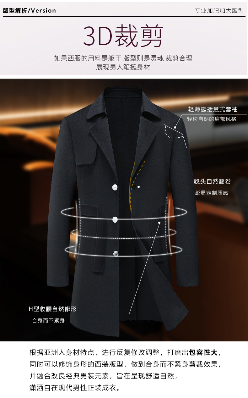 超大码【新款DDS】大依优型大码绵羊毛双面呢毛呢大衣保暖外套上衣男士绅士胖子休闲商务