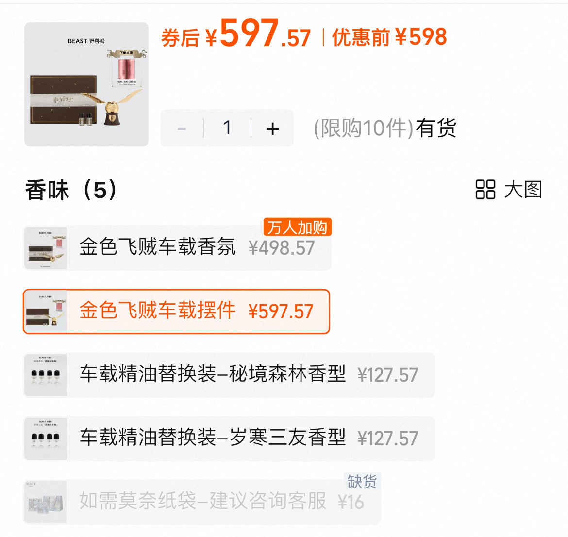 野兽派哈里波特联名款,金色飞贼车载香薰。金灿灿的好好看